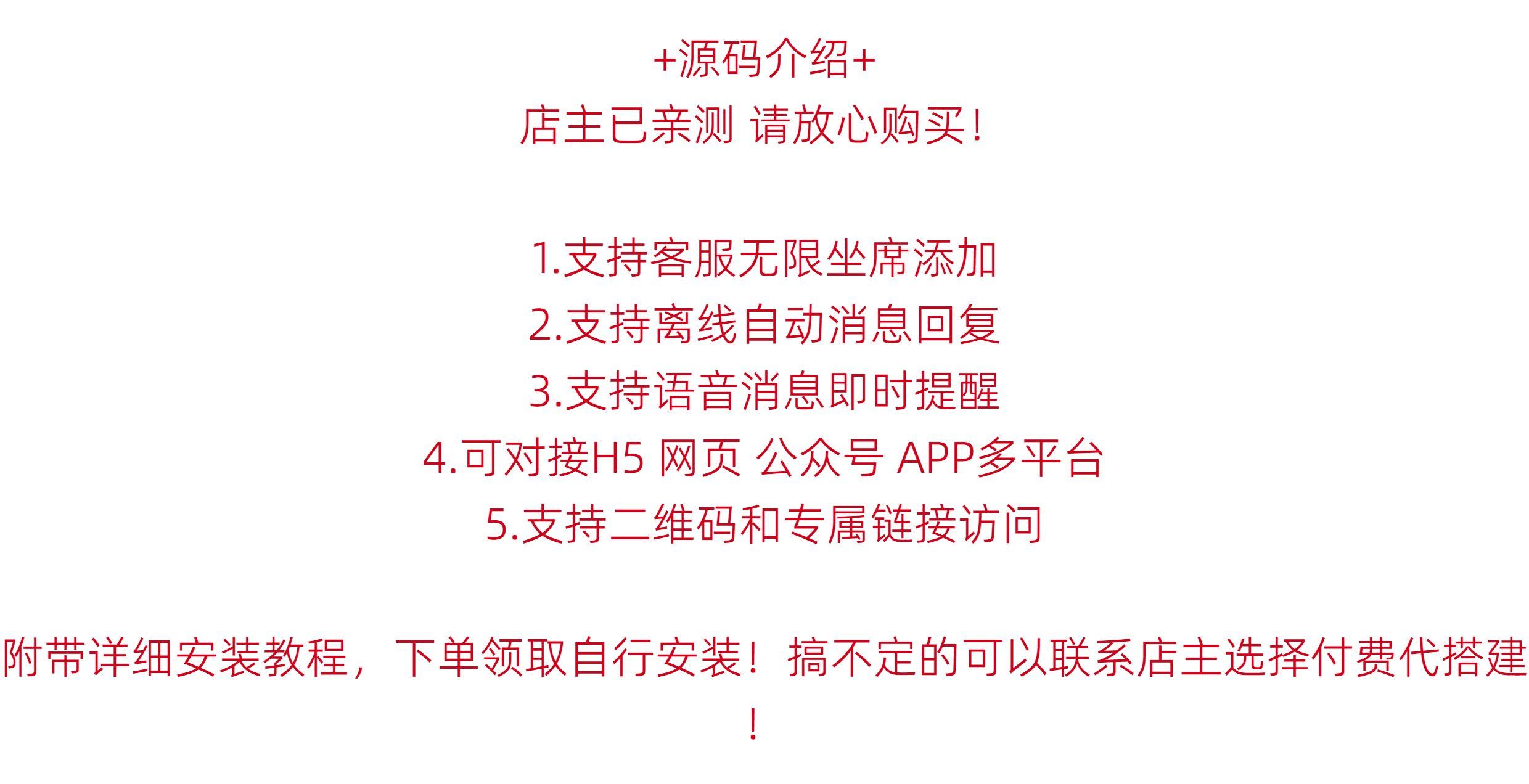 多商户 源码意思就是:总后台可以分配无限多个商户,一个 商户就代表接待的后台 和用户端 两个固定链接,可以把两个固定链接做成二维码 给别人扫码就聊天 很方面的,无需对方注册 ,一个用户IP就代表一个账户。