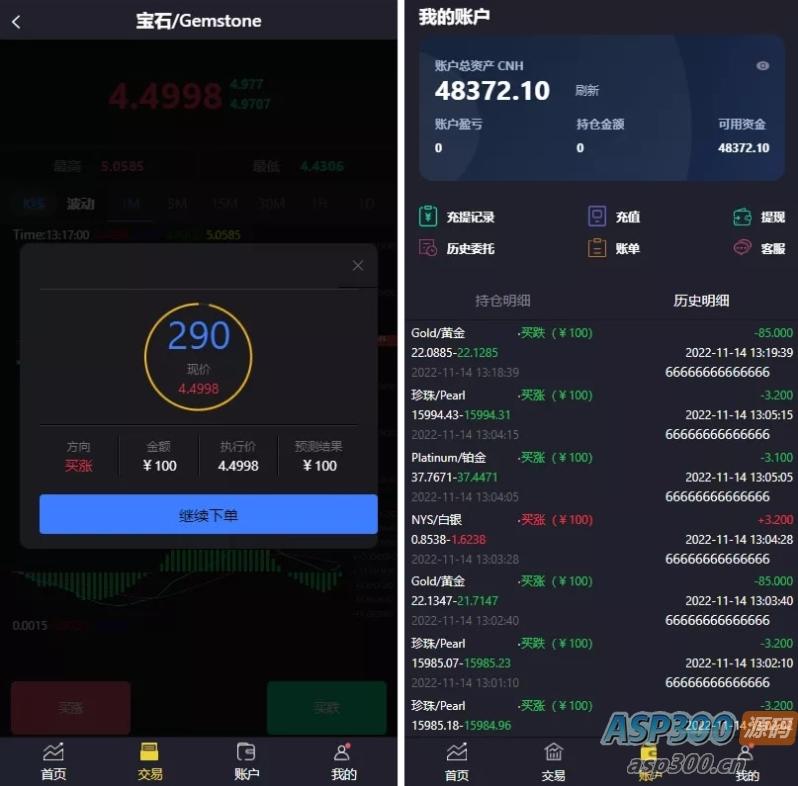 一套二开前端UI得贵金属微交易系统,前端产品后台可任意更换