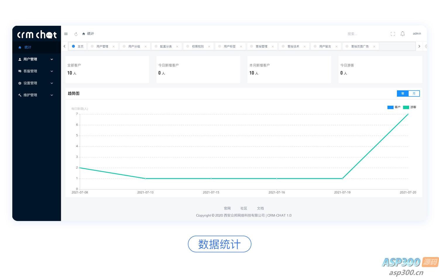 本系统(CRMChat)是采用Swoole4+Tp6+Redis+Vue+Mysql开发的独立高性能客服系统,客服系统用户端支持Pc端、移动端、小程序、文章中接入客服,利用超链接、网页内嵌、二维码、定制对接等方式让网上所有通道都可以快速通过本系统联系到商家,商家端支持Pc端、移动端(App)随时随地接收到用户的各种咨询,商家可以添加话术库、也可以对用户进行分组、加标签、加备注进行管理,是一款互联网链接商家的一个桥梁,也是商家客户管理的工具,本开源项目遵循最开放的木兰协议,可以随意使用。