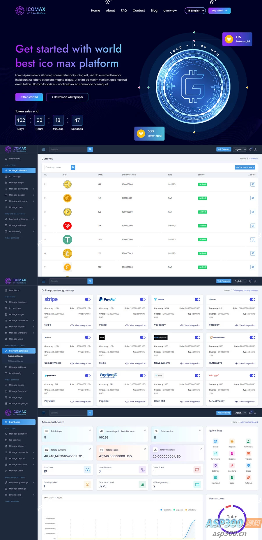区块链虚拟币代币销售拍卖平台,加密货币全方位数字资产交易平台。是一款功能强大的数字资产交易平台,为用户提供了安全、高效的交易环境。该平台基于最新的 Laravel 8.x 框架开发,具有易于安装、多语言支持、在线/离线支付网关、KYC、电子邮件和短信验证等特色功能。此外,ICOMAX 还支持多种支付网关,包括 Razorpay、Coinpayment、Mollie Payment、NowPayments、PayStack、Flutterwave 等。用户可以使用法定货币和多种加密货币进行阶段性销售,并享受拍卖和聊天等功能。无论是个人用户还是企业机构,ICOMAX 都能满足其数字资产交易的需求。