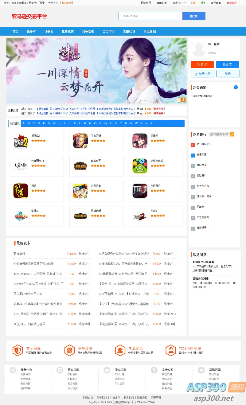 游戏账号交易平台源码,平台内置几套模版,支持商品发布,支持自助广告,支持会员注册,支持在线支付,搭建起来运营当个副业也不错。
