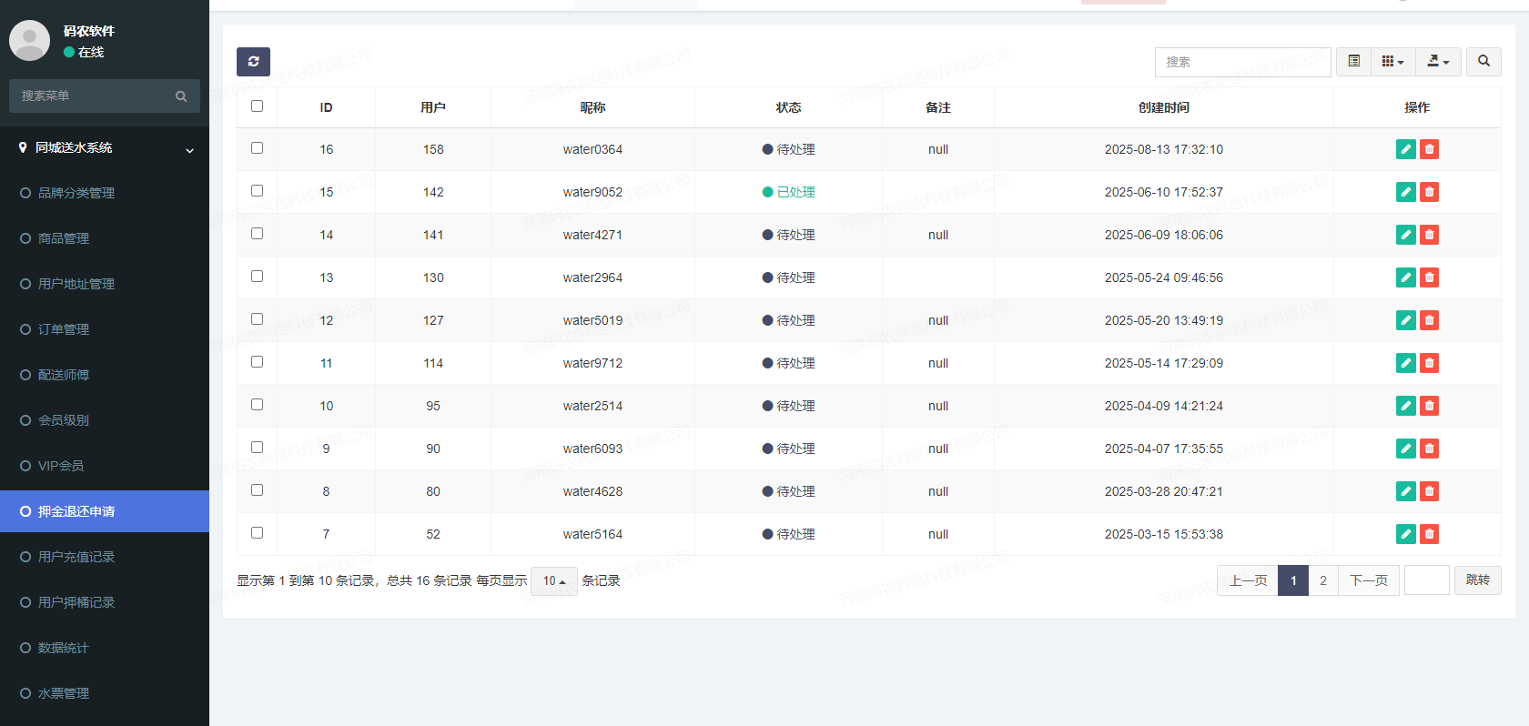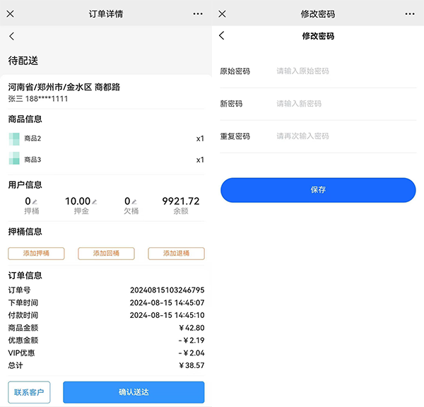 十、桶押金:系统需要根据用户的用桶量自动对应不同的押金,用户退桶管理员可以直接线上退去押金,方便快捷。
