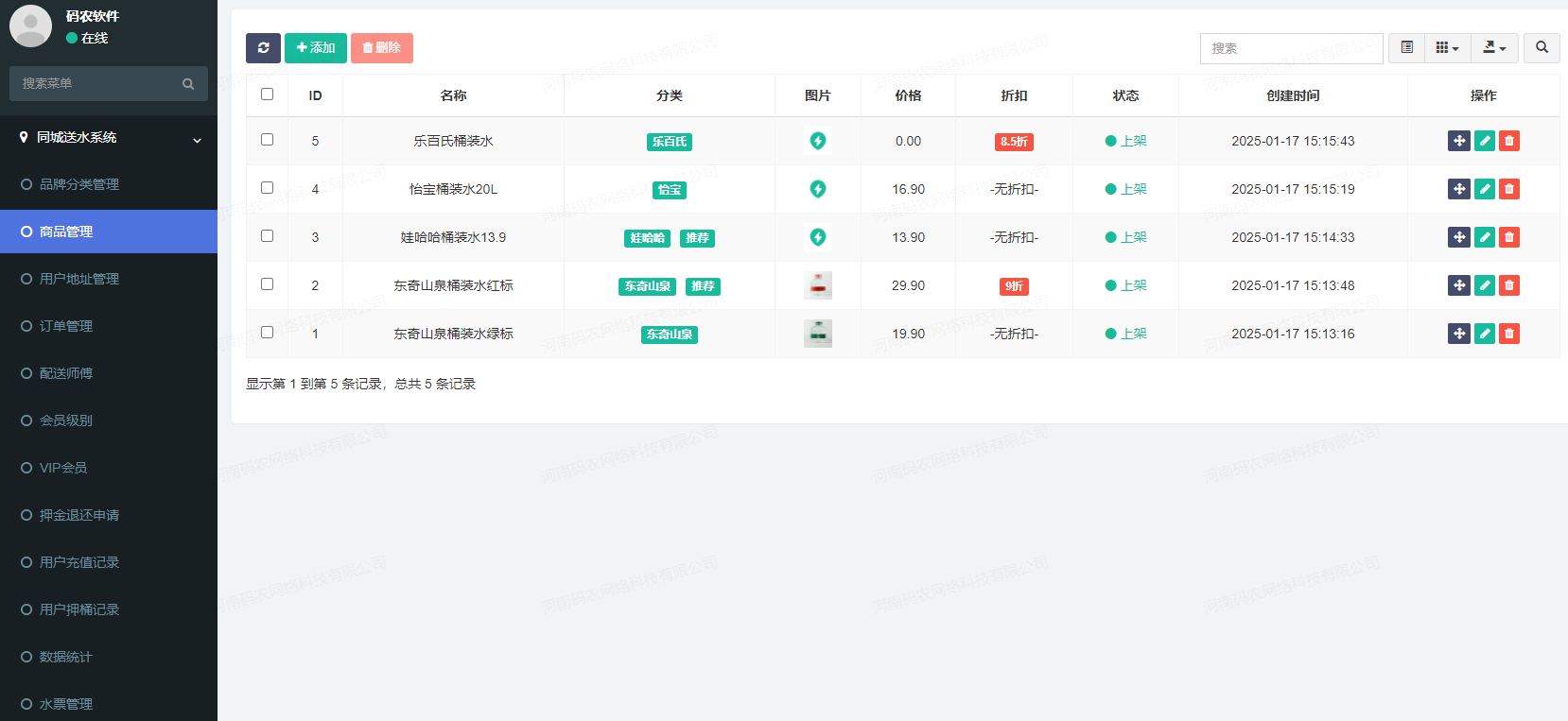 五、订单管理:提供订单管理功能,包括订单状态、送水时间、送水地点等信息的查询和管理。