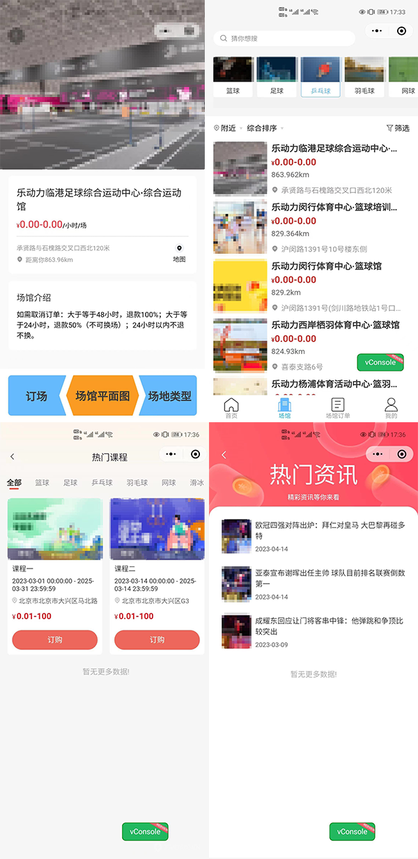 一款基于ThinkPHP+UniApp开发的多场馆场地预定小程序,提供运动场馆运营解决方案,适用于体育馆、羽毛球馆、兵乒球馆、篮球馆、网球馆等场馆!