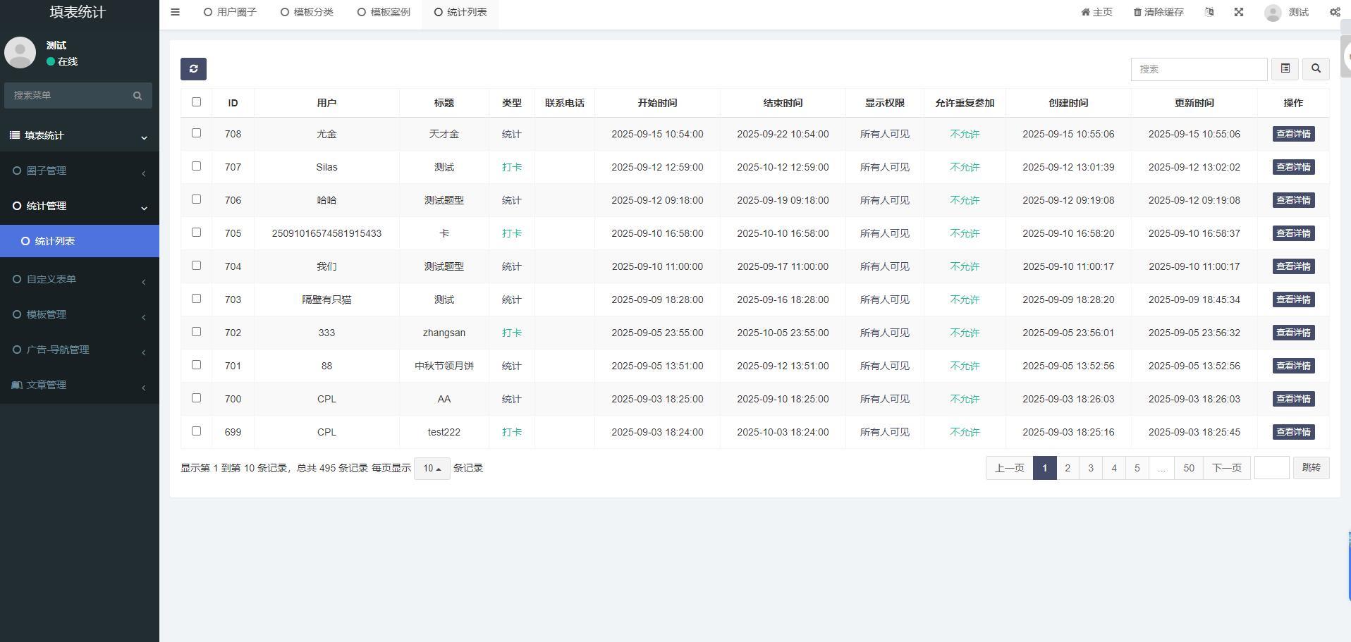 填表统计预约打卡表单系统是一款基于FastAdmin+ThinkPHP+UniApp开发的一款集信息填表、预约报名,签到打卡、活动通知、报名投票、班级统计等功能的自定义表单统计小程序。