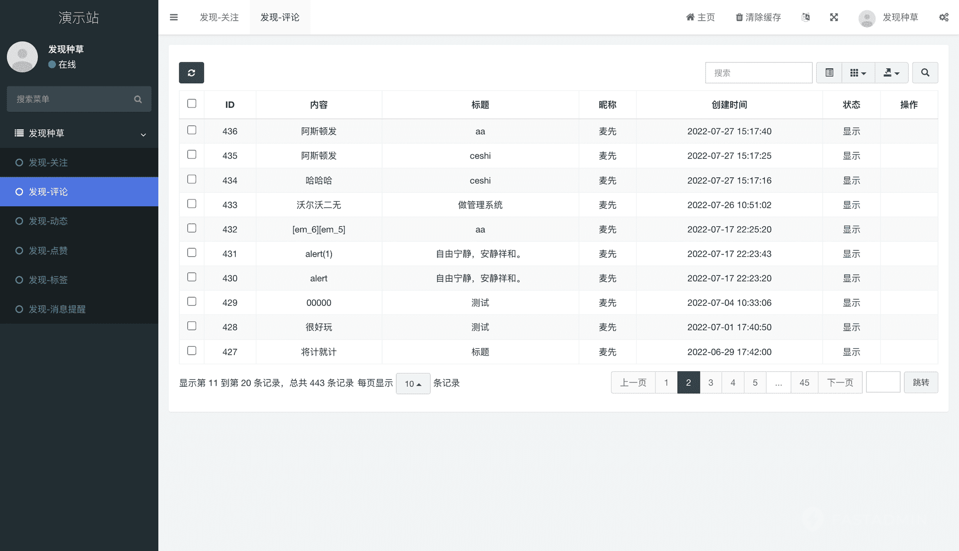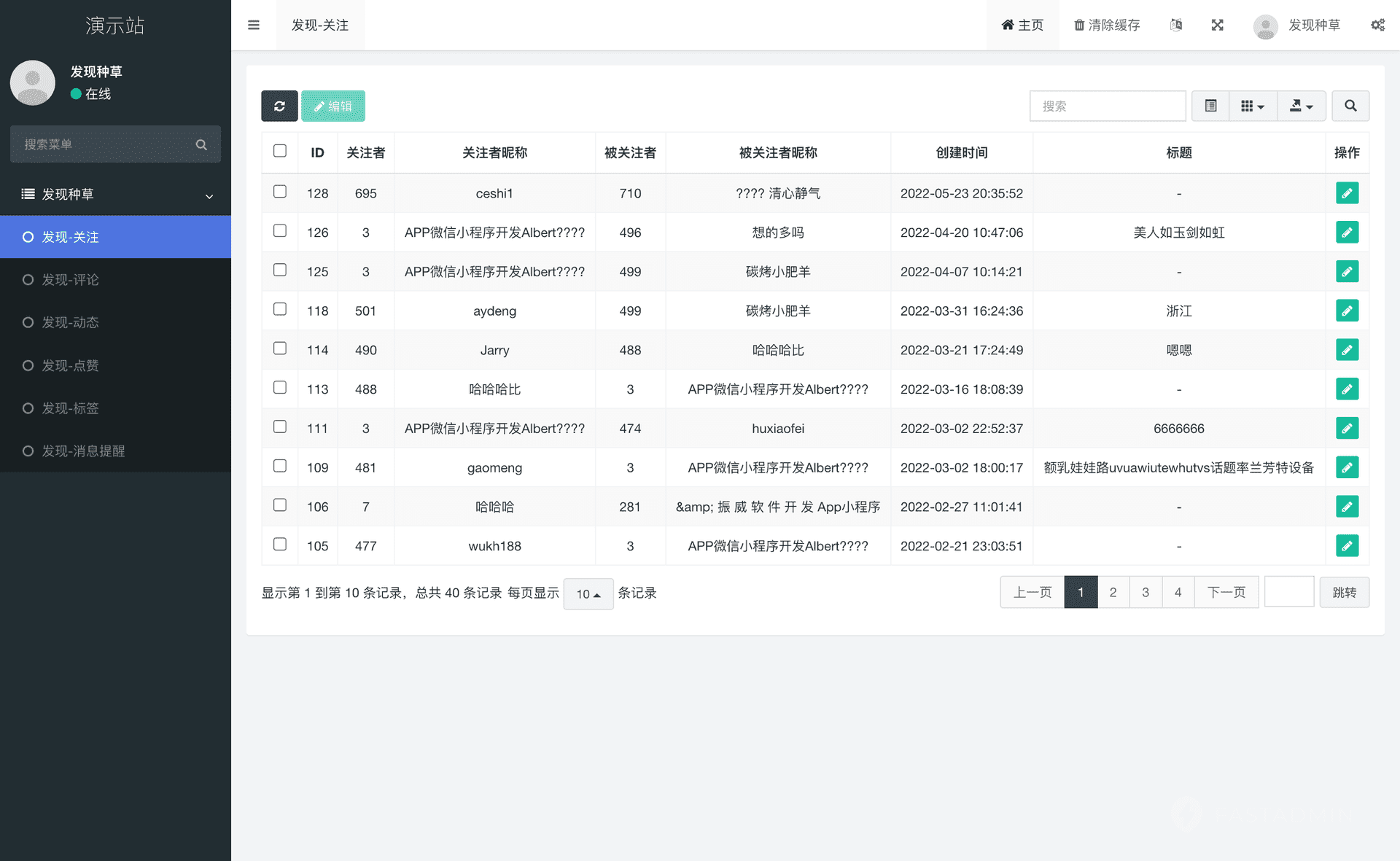 动态消息提醒;关注消息,点赞消息,评论消息均产生消息提醒,同时可以对消息一度。