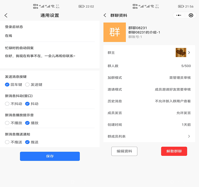 成员邀请成员、群消息状态、群内昵称、群禁言、群免打扰、删除成员等,轻松n对n沟通