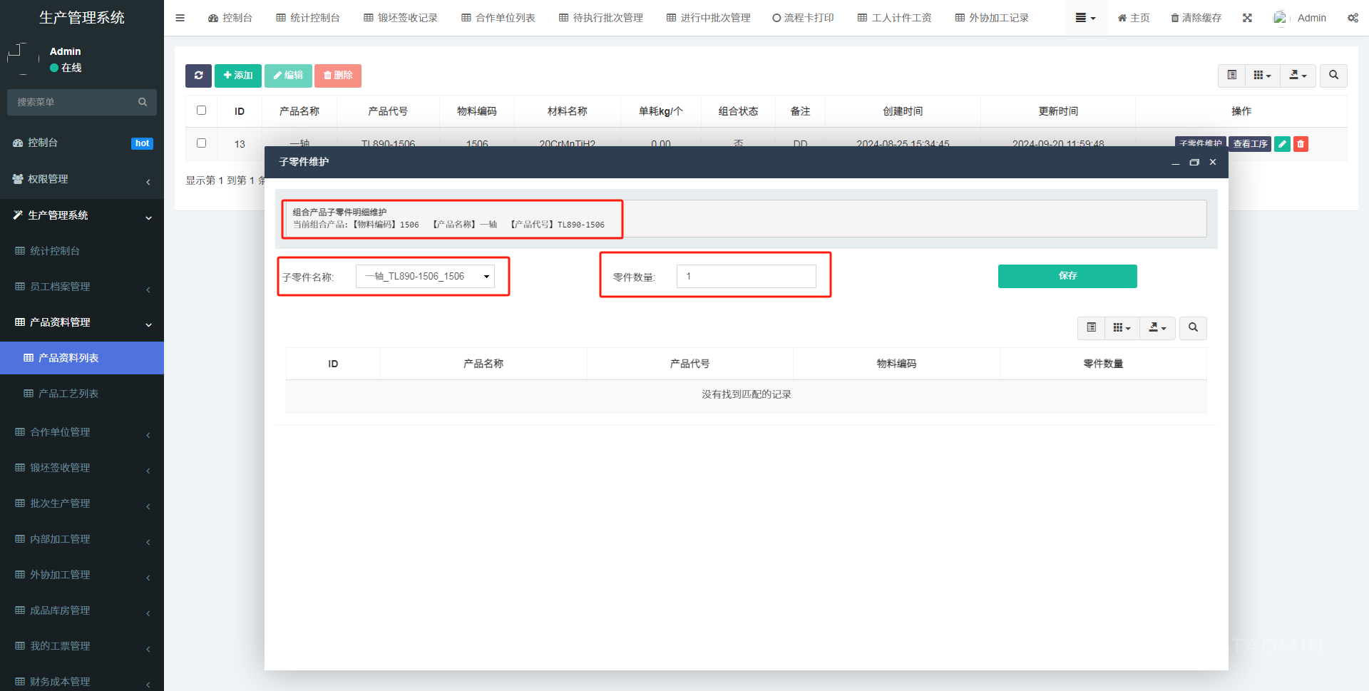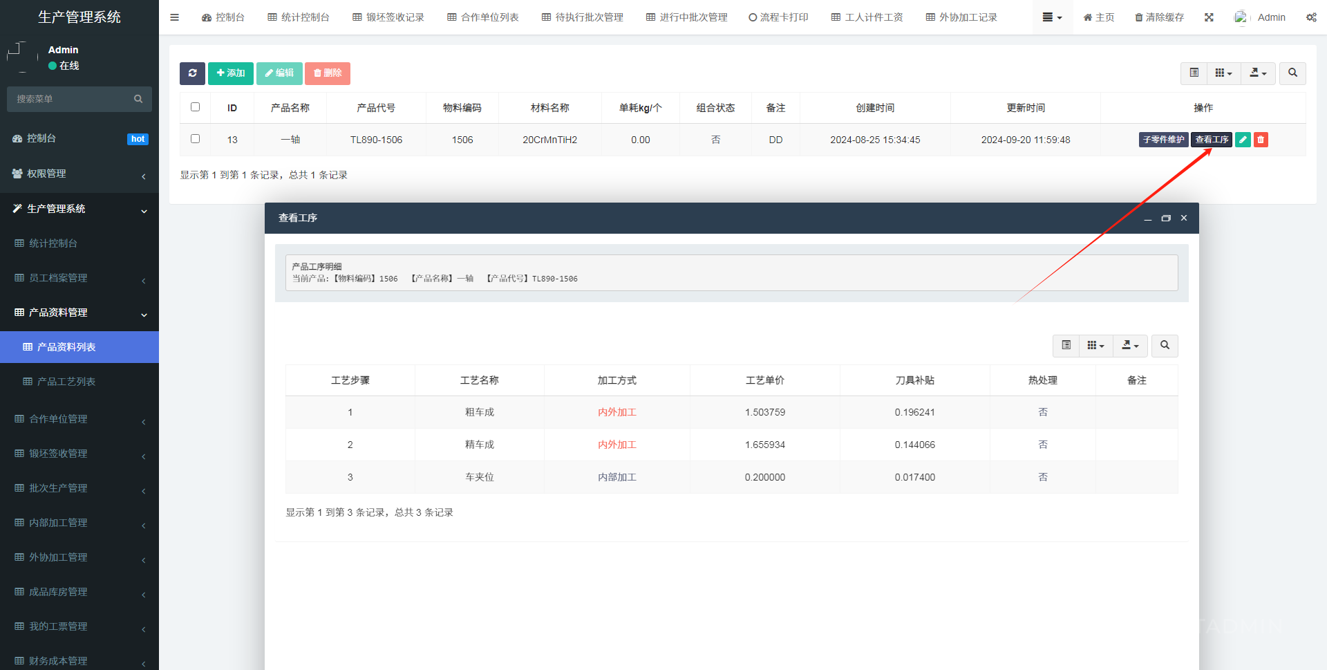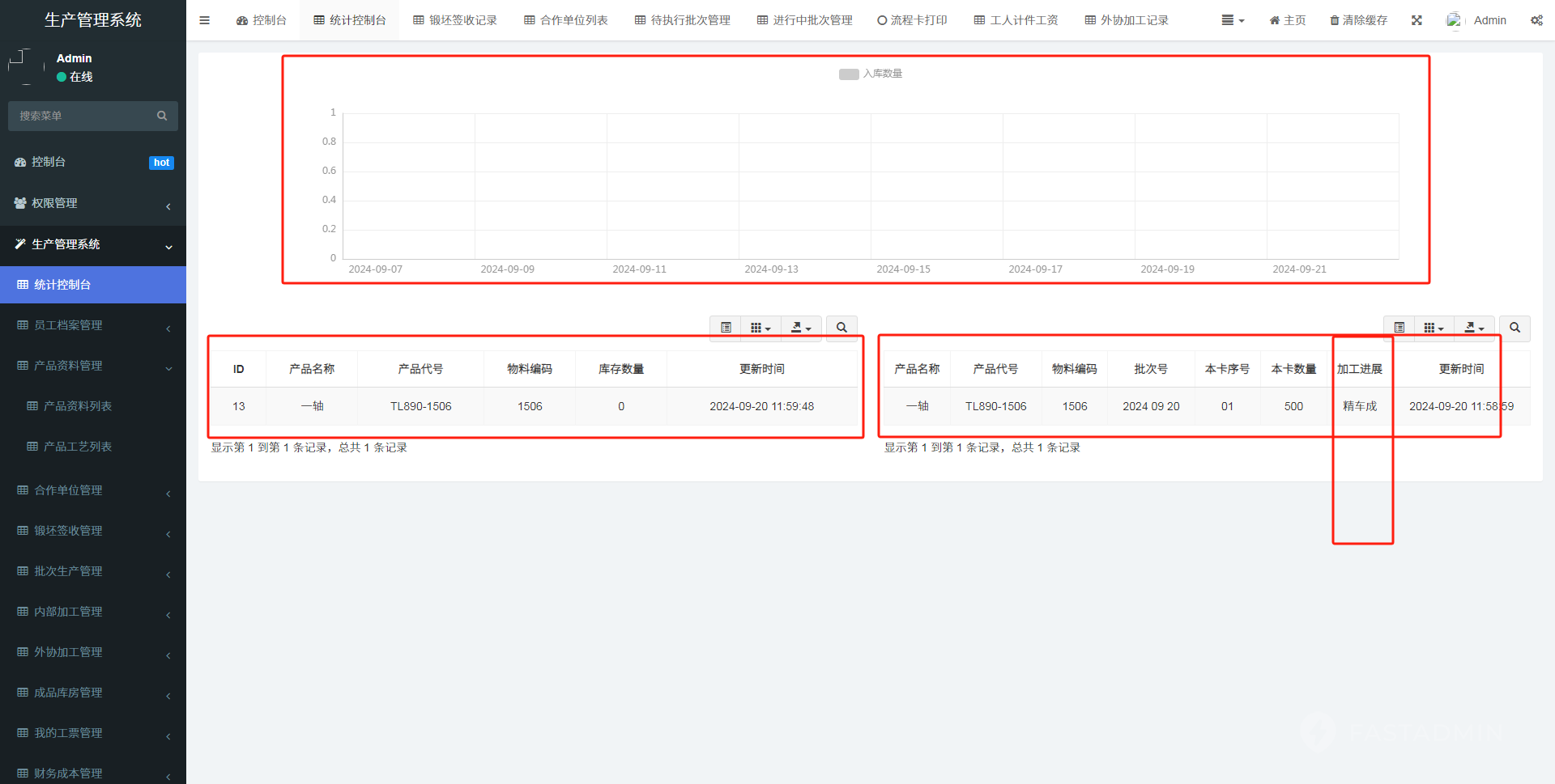 一款基于FastAdmin+ThinkPHP开发的一款适用于汽车零配件制造企业的生产信息化管理,从锻坯签收到成品入库、出库全流程过程管控,实现了生产过程的全信息化跟踪管理。根据锻坯签收的数量可以制定多批次生产计划流转卡,同时锻坯签收