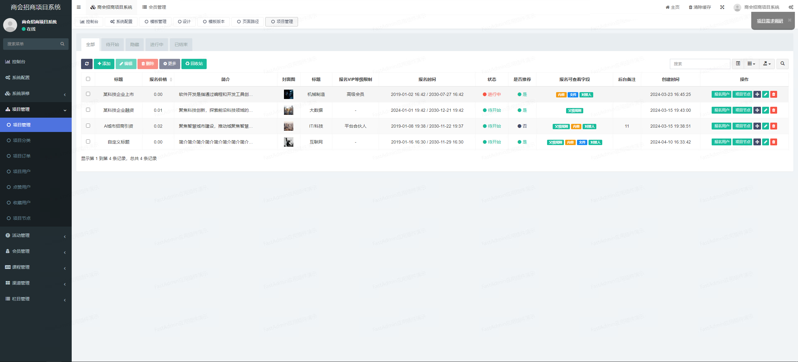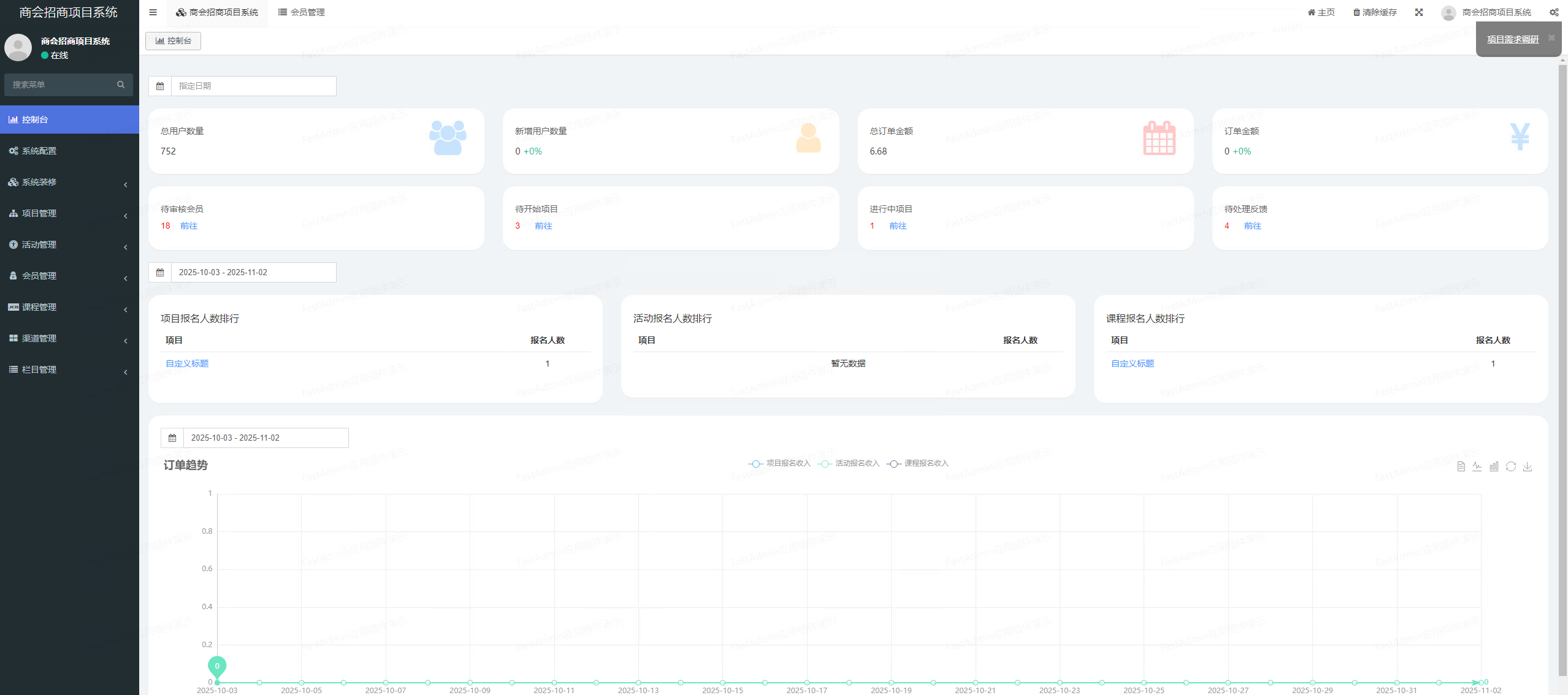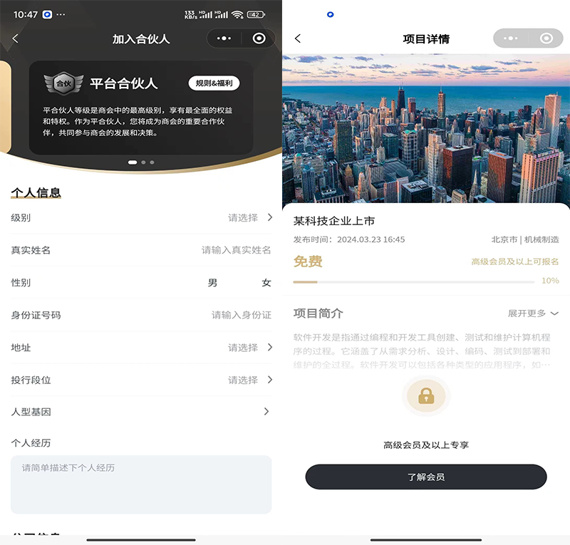 一款基于FastAdmin+ThinkPHP+Uniapp开发的商会招商项目系统,是一个集PC和移动端功能于一体的解决方案,线上线下进行服务,围绕 活动报名、在线课程、项目大厅、线下签到、会员系统等。为商会提供了更加便捷高效的管理方式,提升了商会活动和项目的组织、推广和运营能力。
