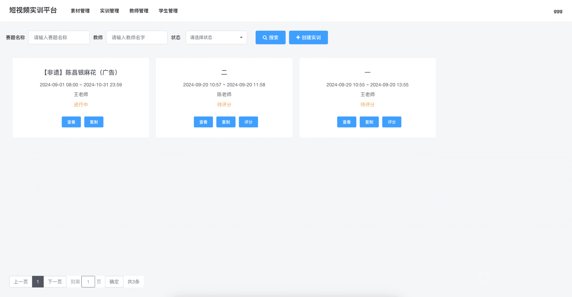 复制实训:支持复制实训项目,减少重新创建实训的庞大工作量。