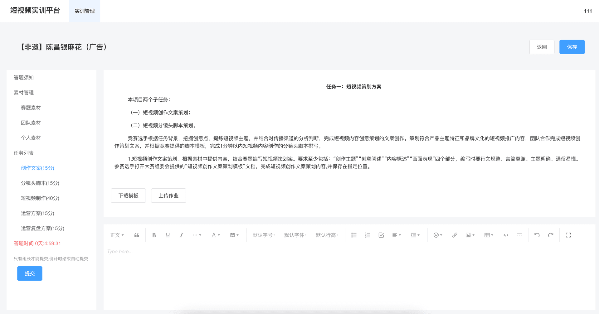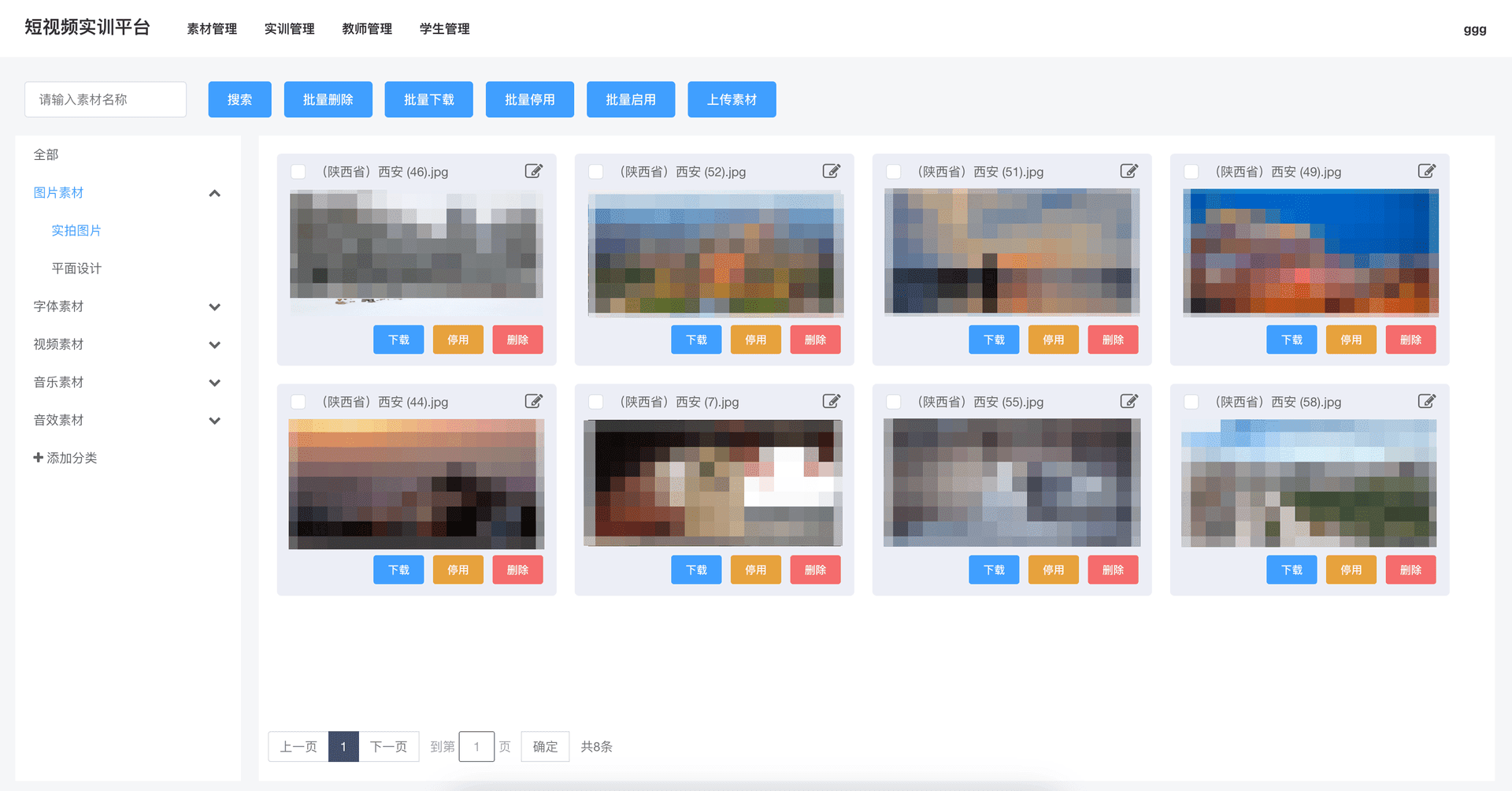 统一的素材管理:可集中管理各类实训素材,在不同的实训项目中直接引用,无需实训创建时重复上传各类素材。