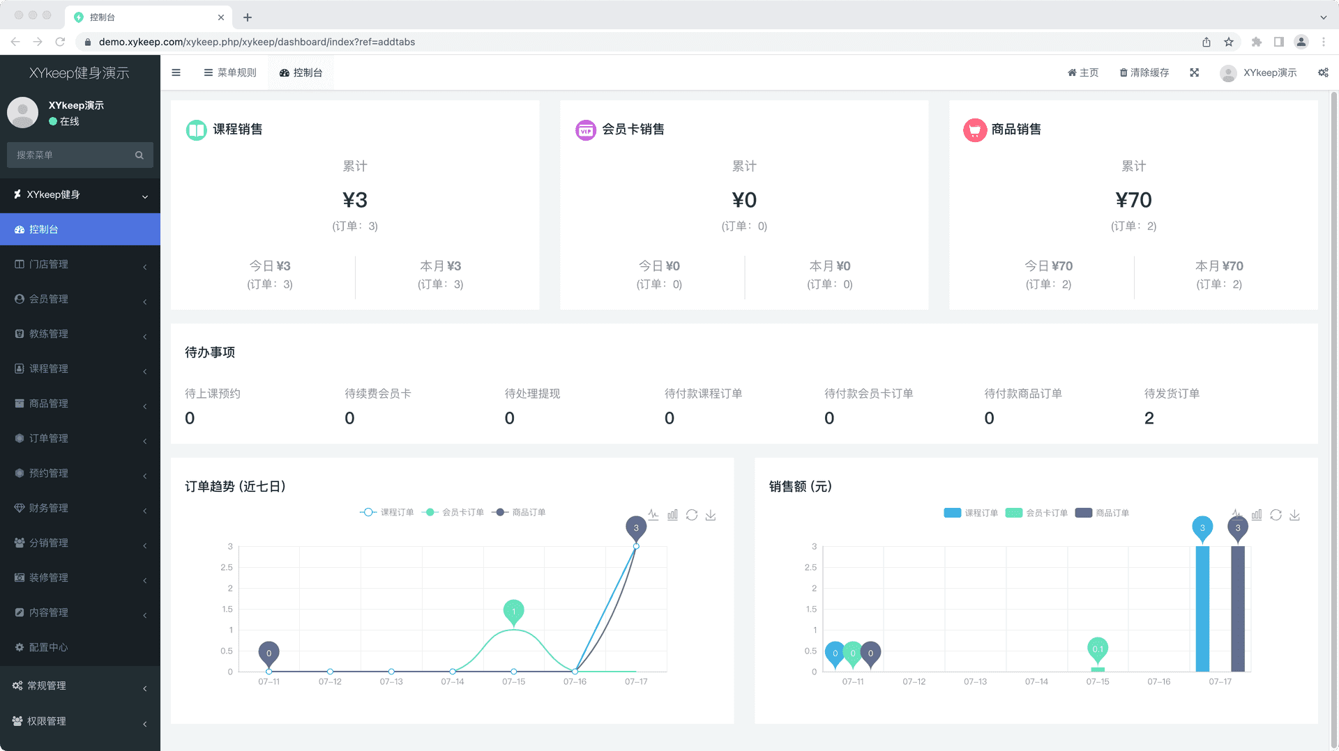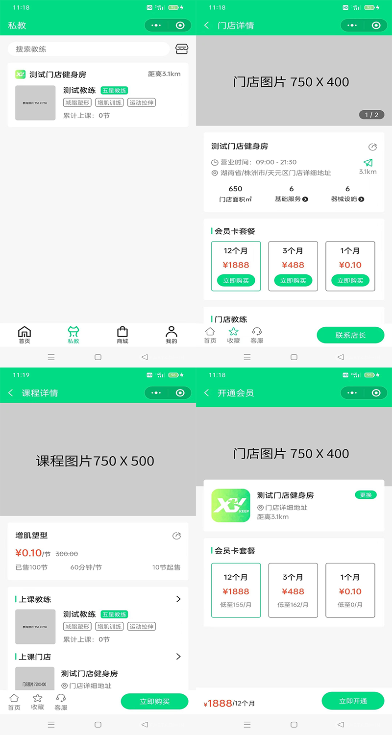门店模块:可管理多个门店,门店均可售卖课程、办理会员卡。
