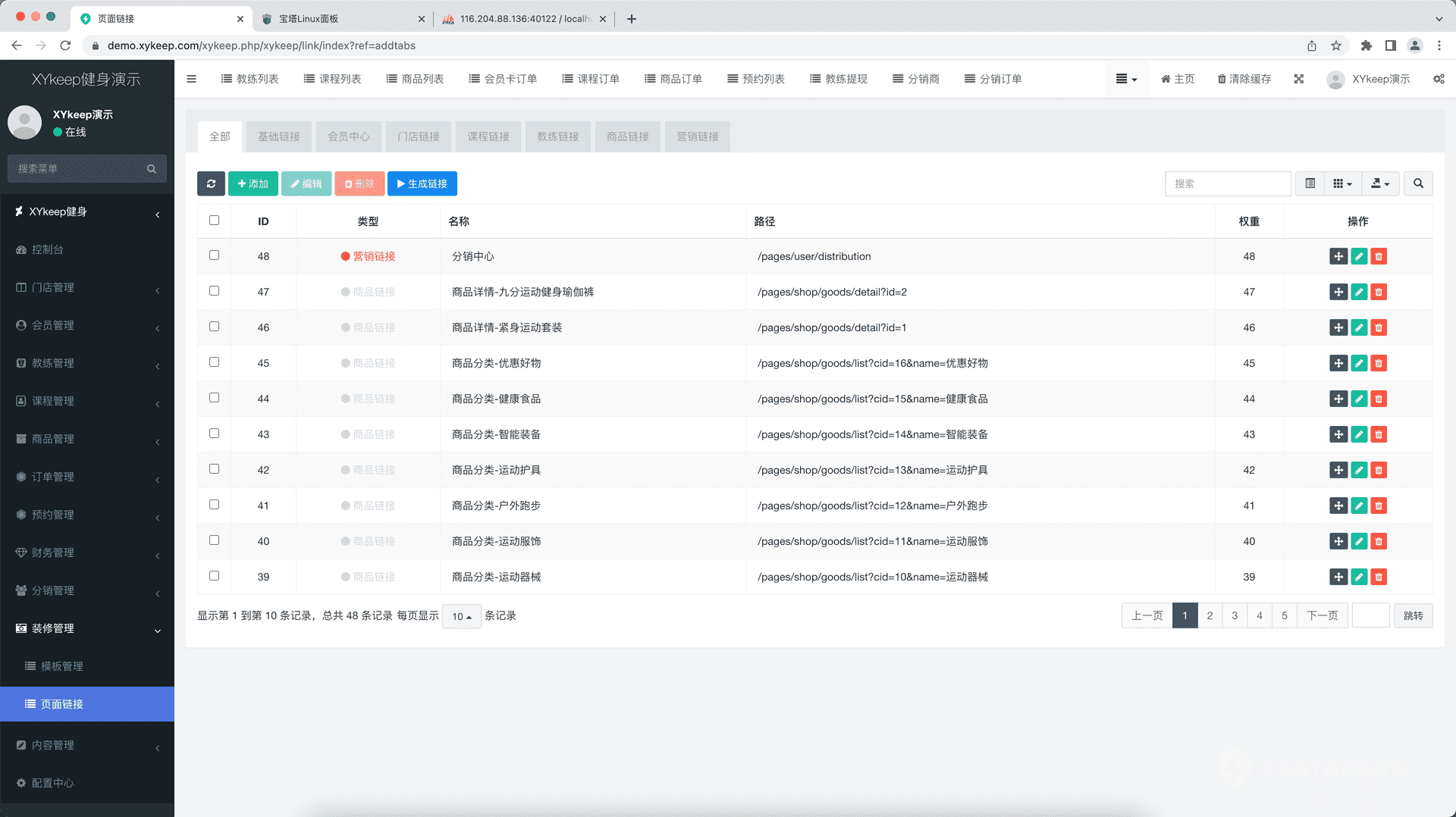 订单模块:包含会员卡、课程、商品订单。