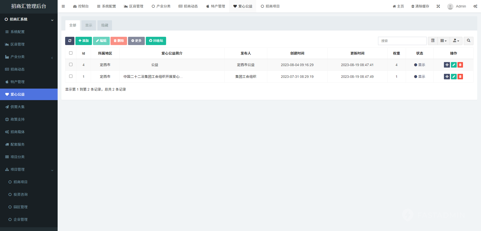 爱心公益:可在后台发布县区公益信息,让更多人参与公益事业