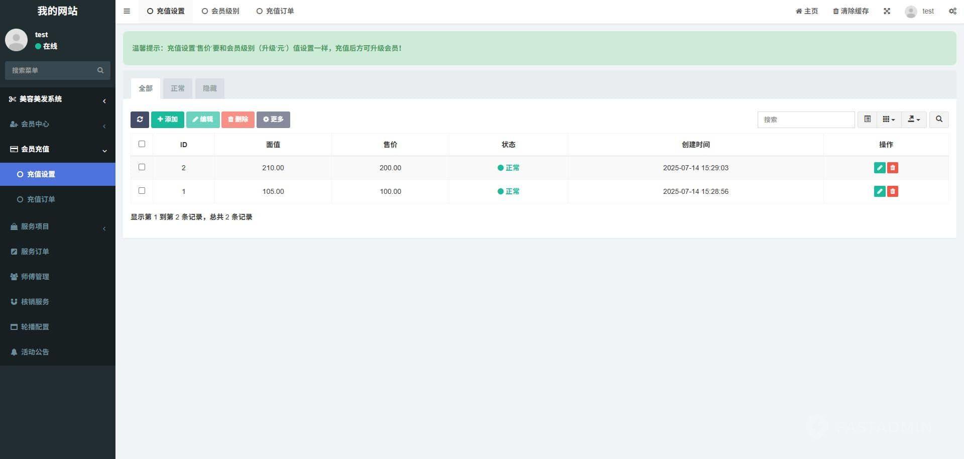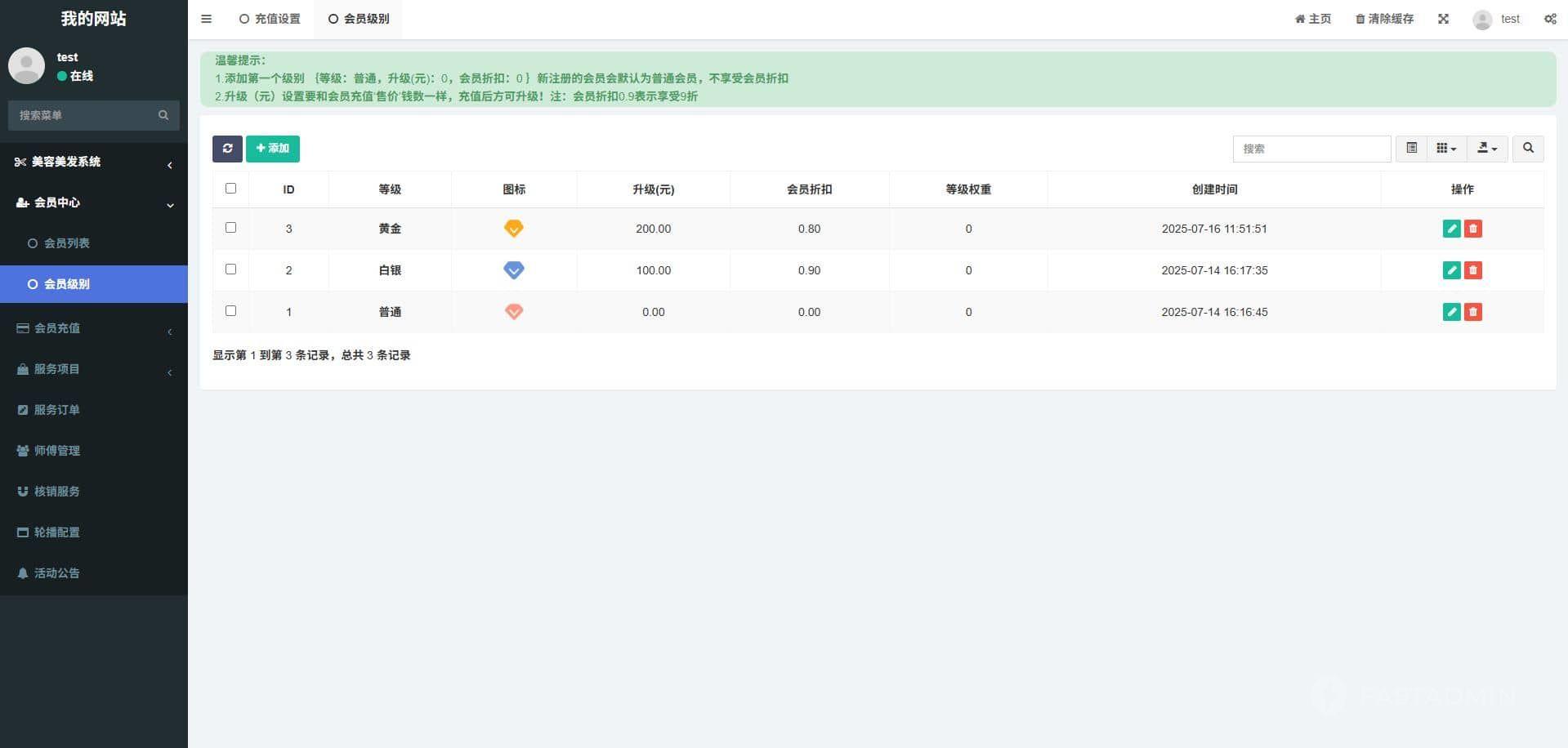 会员充值:会员享受折扣,充值售价和会员级别升级条件设置同等价,充值后可升级对应会员级别。