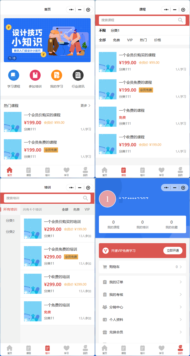 VIP会员:可以设定月卡、季卡、年卡,成为会员可以免费学习限定的课程或培训