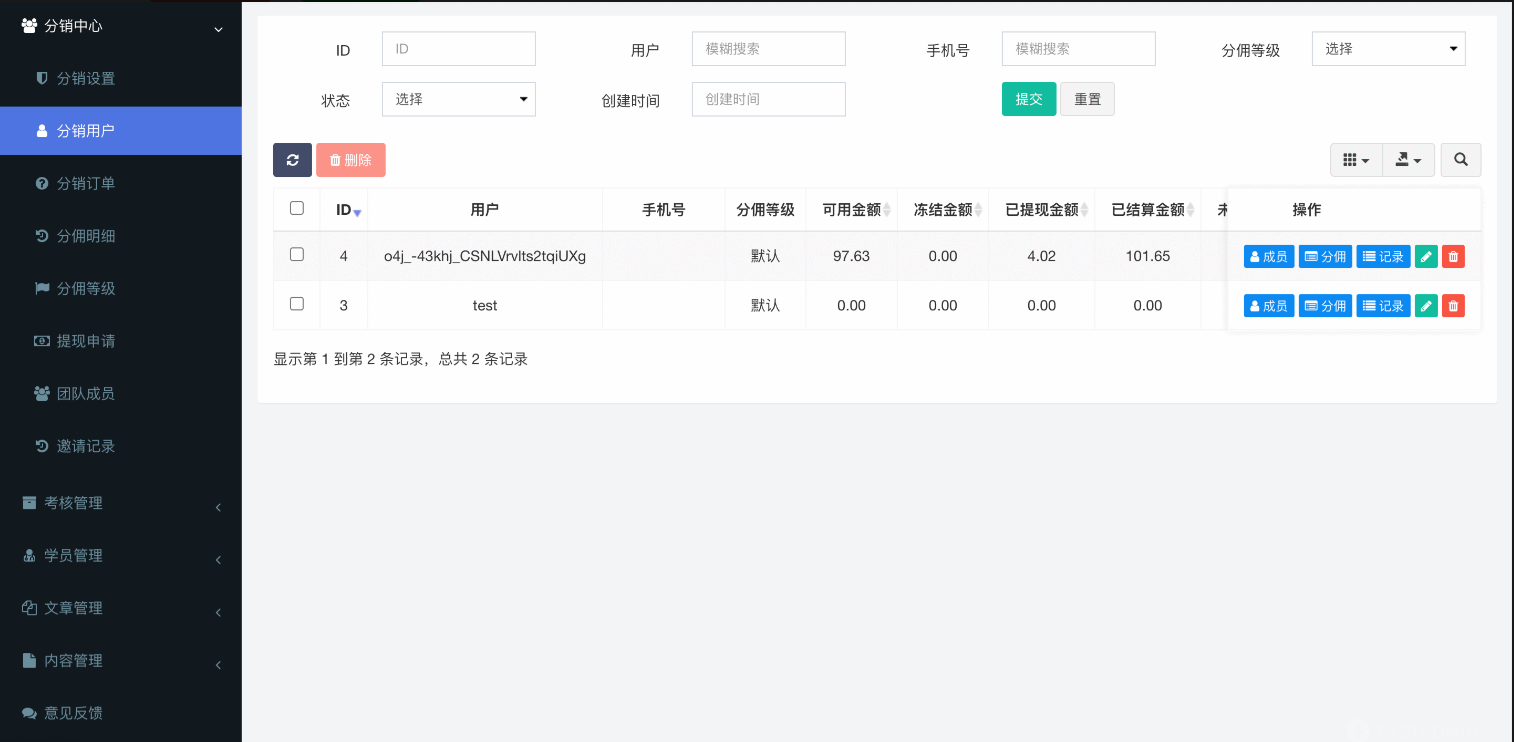学员管理:支持机构学员导入,然后学员可以通过手机号进行登录学习