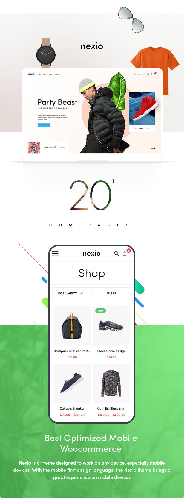 Nexio 是一个高端设计适用于任何设备,特别是移动设备的 WordPress 在线商店主题。主题遵守移动第一设