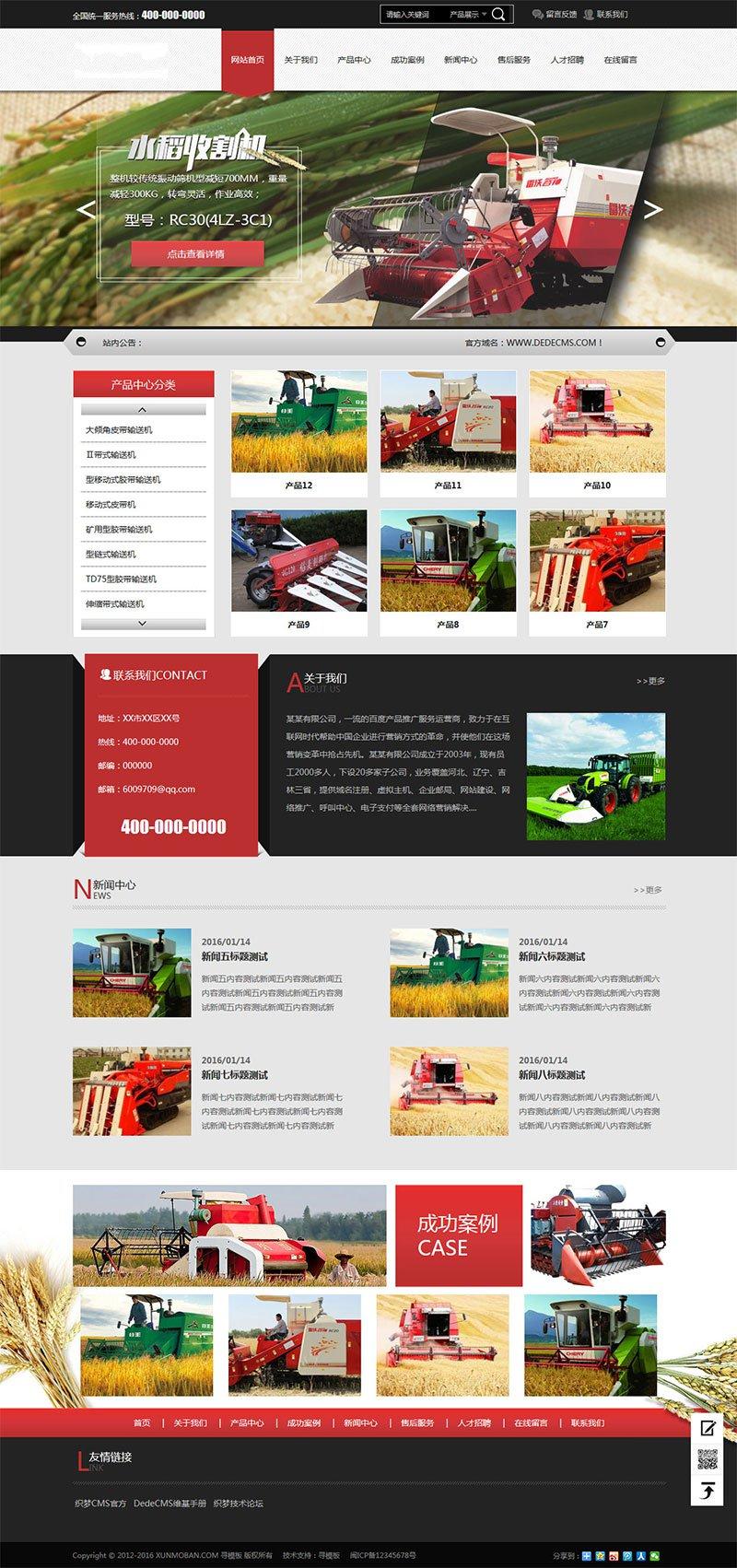 (手机自适应)收割机农业机械设备公司网站源码 dedecms织梦模版