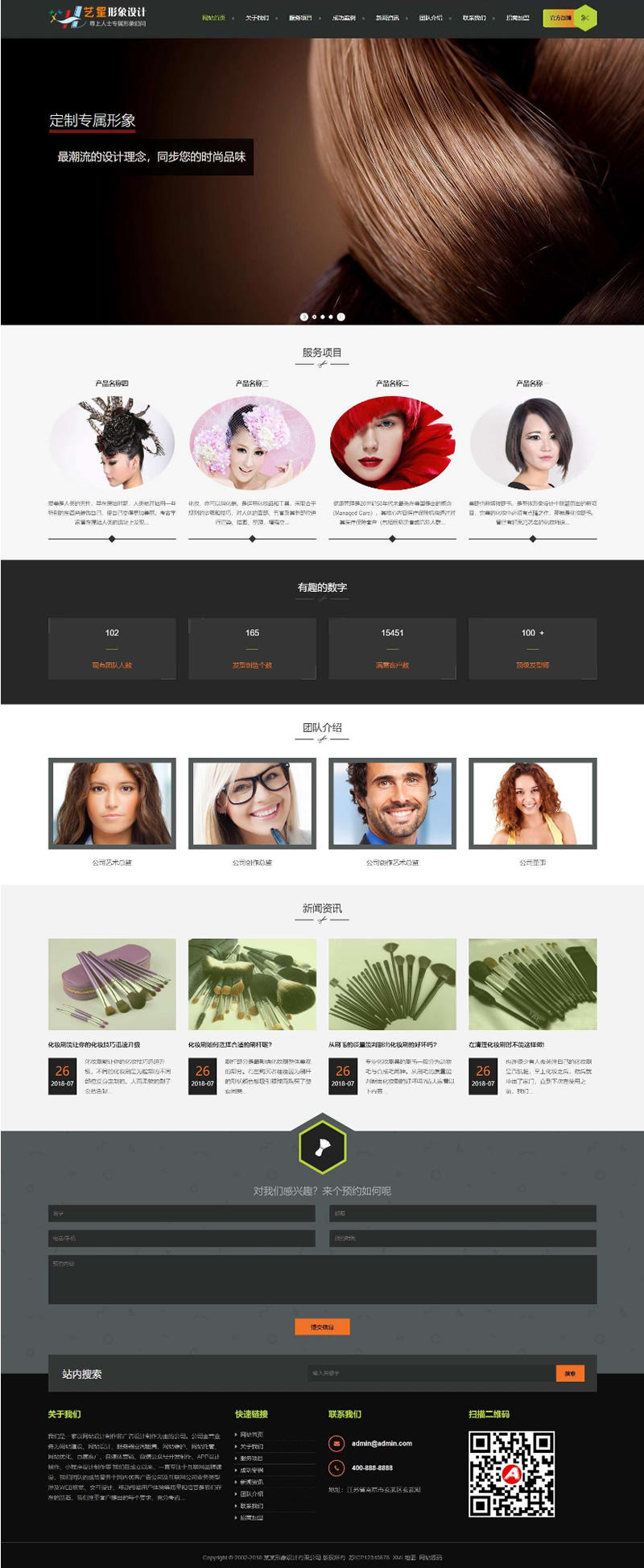 H5自适应美容美发发型设计学校教育艺术学校网站织梦模板dede源码[自适应手机] dede模板介绍:此模板是根据织梦内核最新开发的适合做形象设计,美容美发,发型设计,等学校,艺术学校等织梦模板