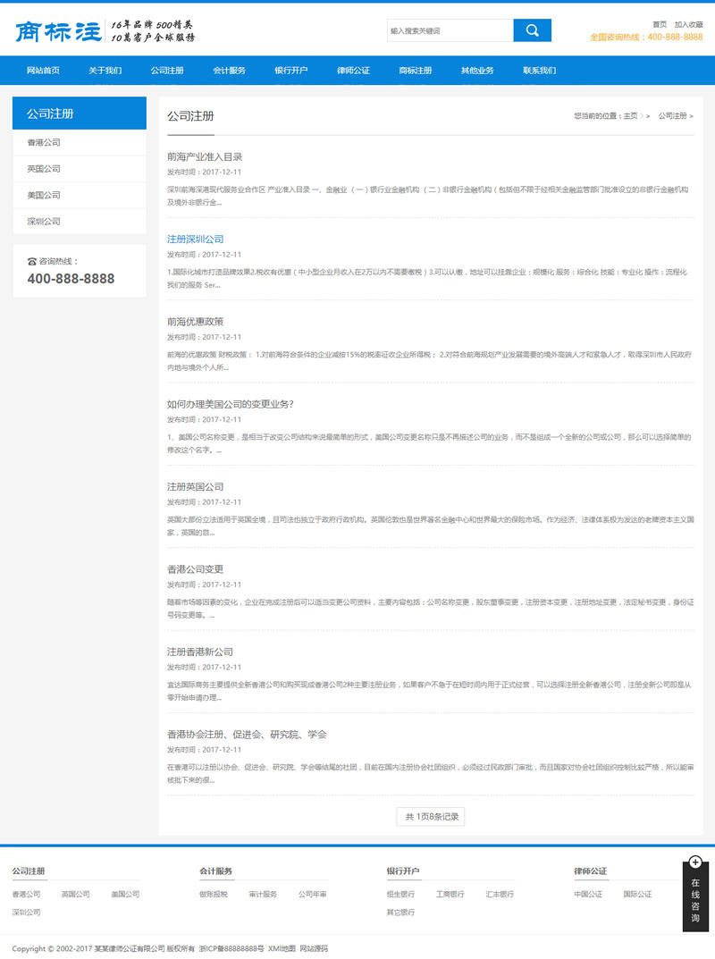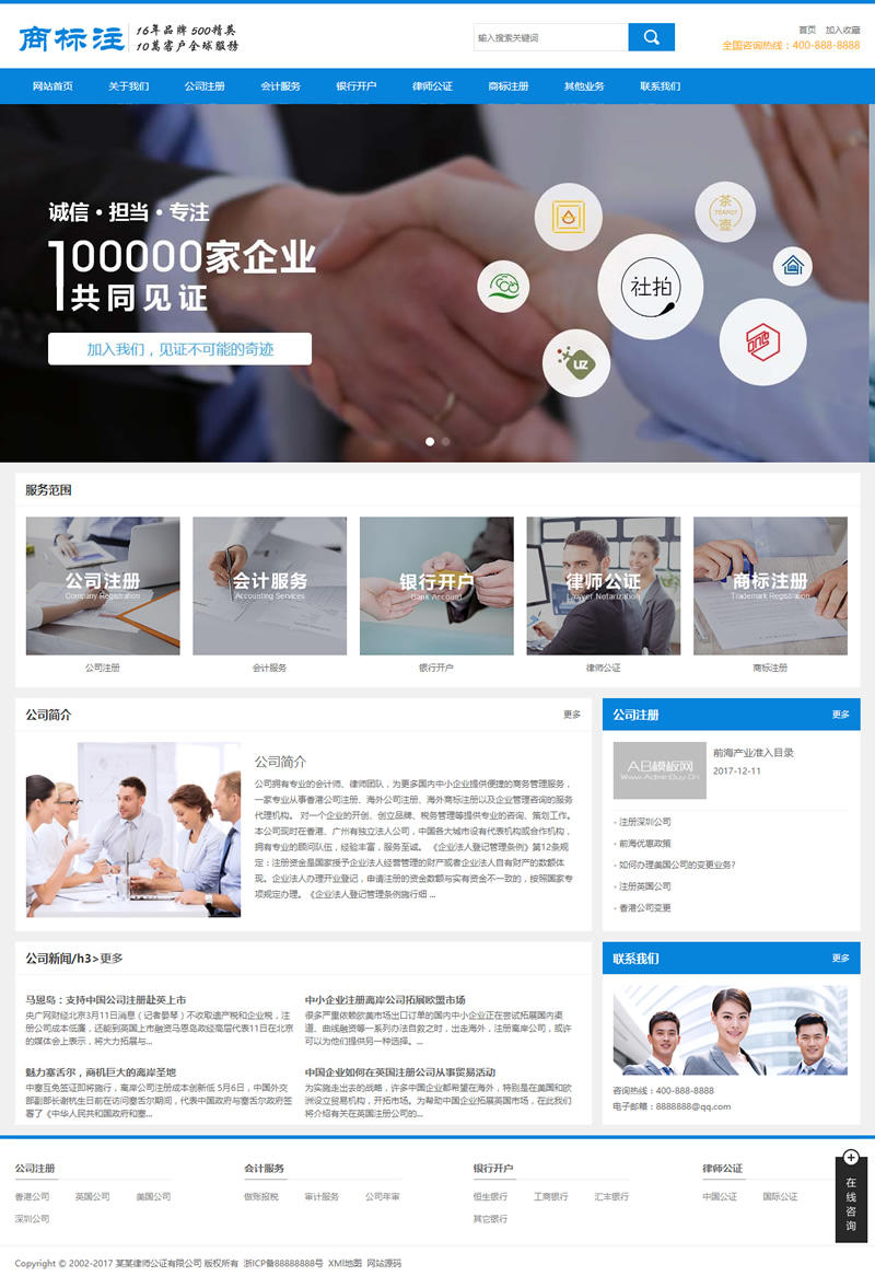 本套织梦模板采用织梦最新内核开发的模板,这款模板使用范围广,不仅仅局限于一类型的企业,公司注册类、财务会计类的网站都可以用该模板。你只需要把图片和文章内容换成你的即可,颜色都可以修改,改完让你耳目一新的感觉!布局规整,利于用户体验,手工书写DIV+CSS,代码精简。