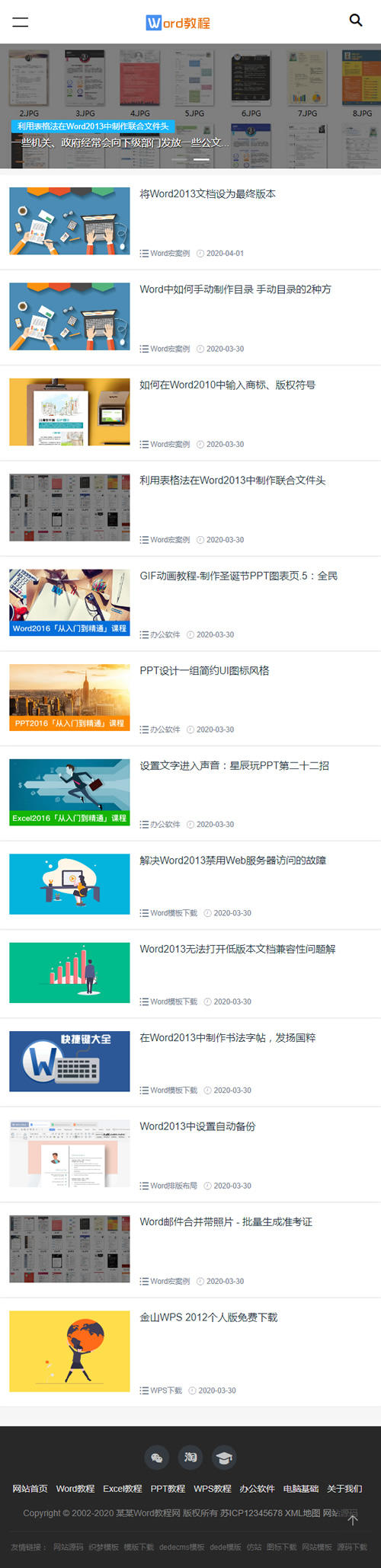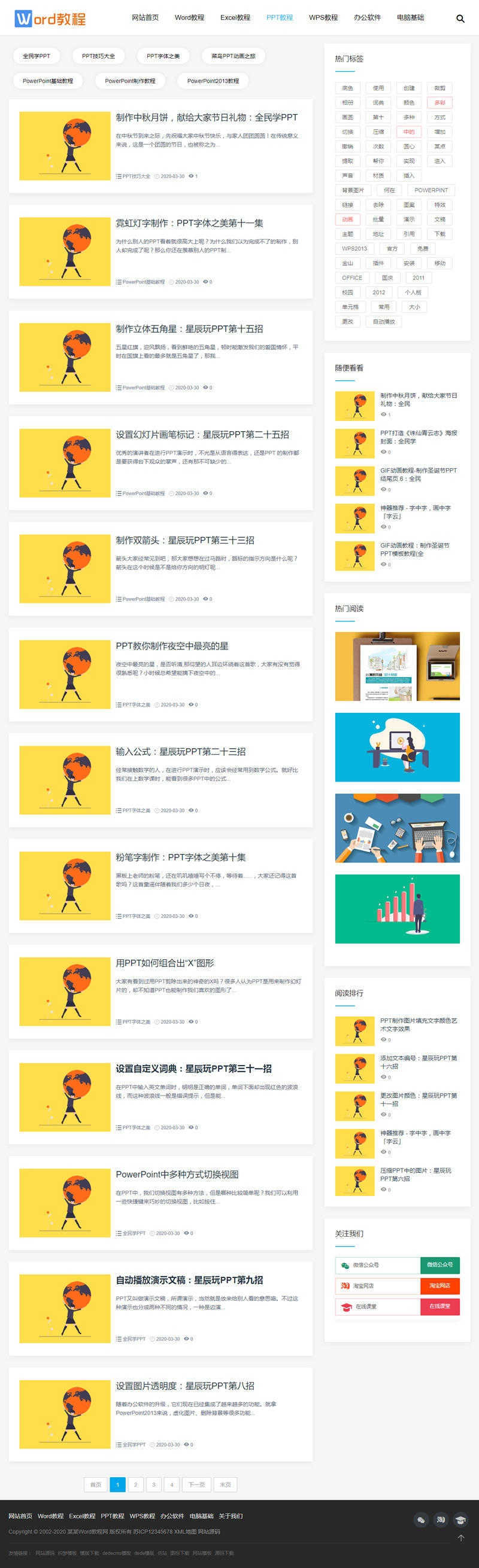 3、适用于WORD教程网站模板、教程资源网站源码;
