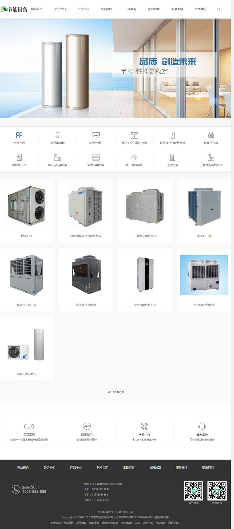 3、适用于空调地暖设备网站模板、节能热水器网站源码;