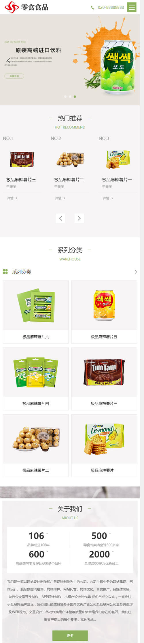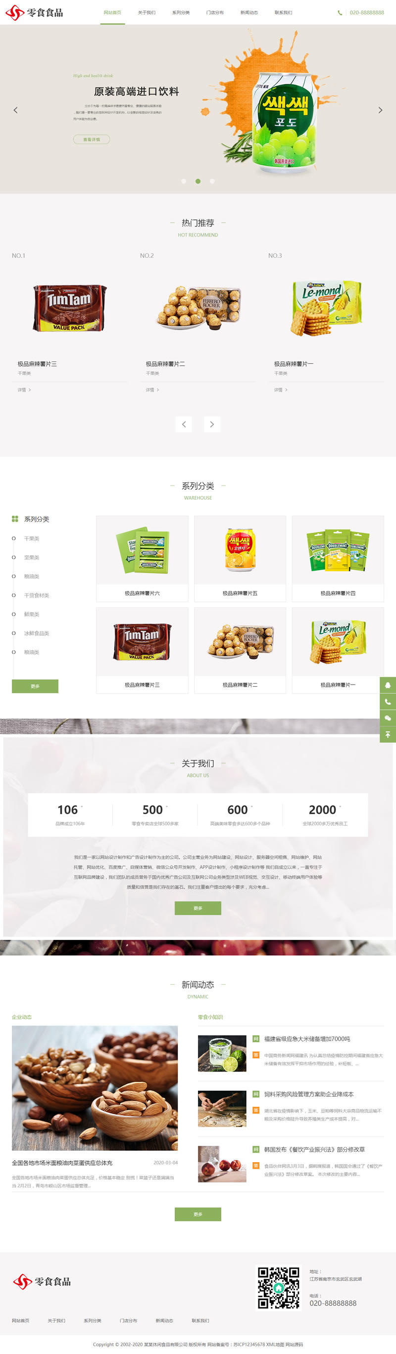 3、适用于食品网站模板、零食连锁店网站源码;
