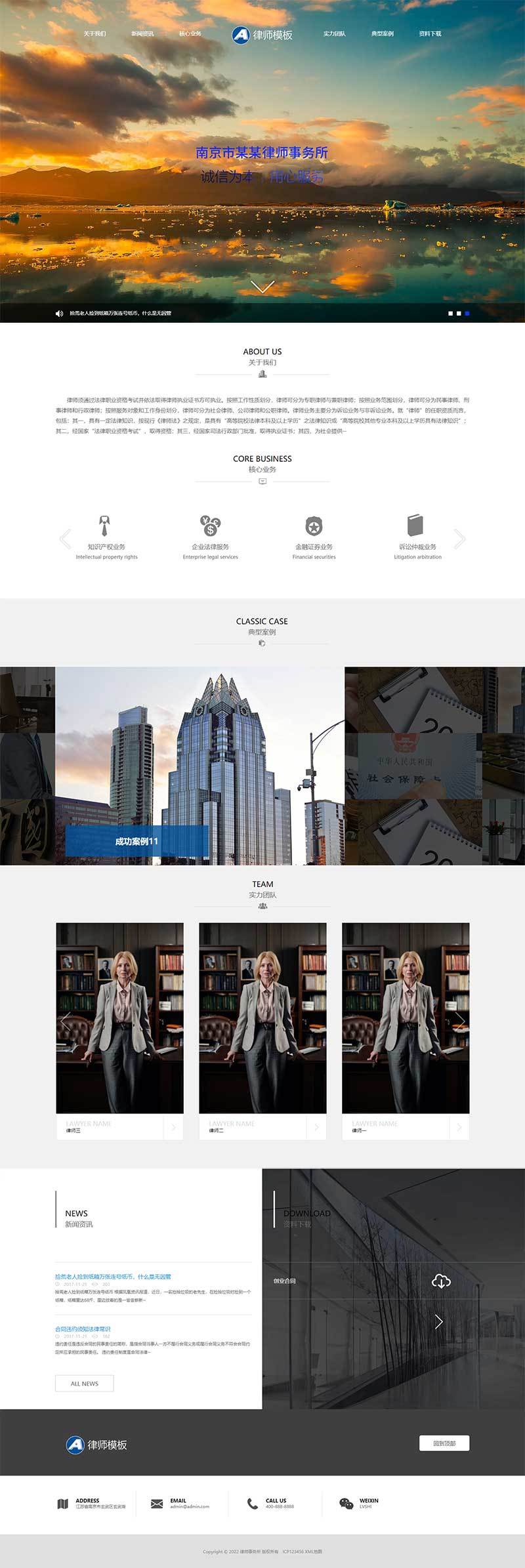 PbootCMS内核开发的网站模板,该模板适用于律师事务所网站、律师法律网站等企业,当然其他行业也可以做,只需要把文字图片换成其他行业的即可;
