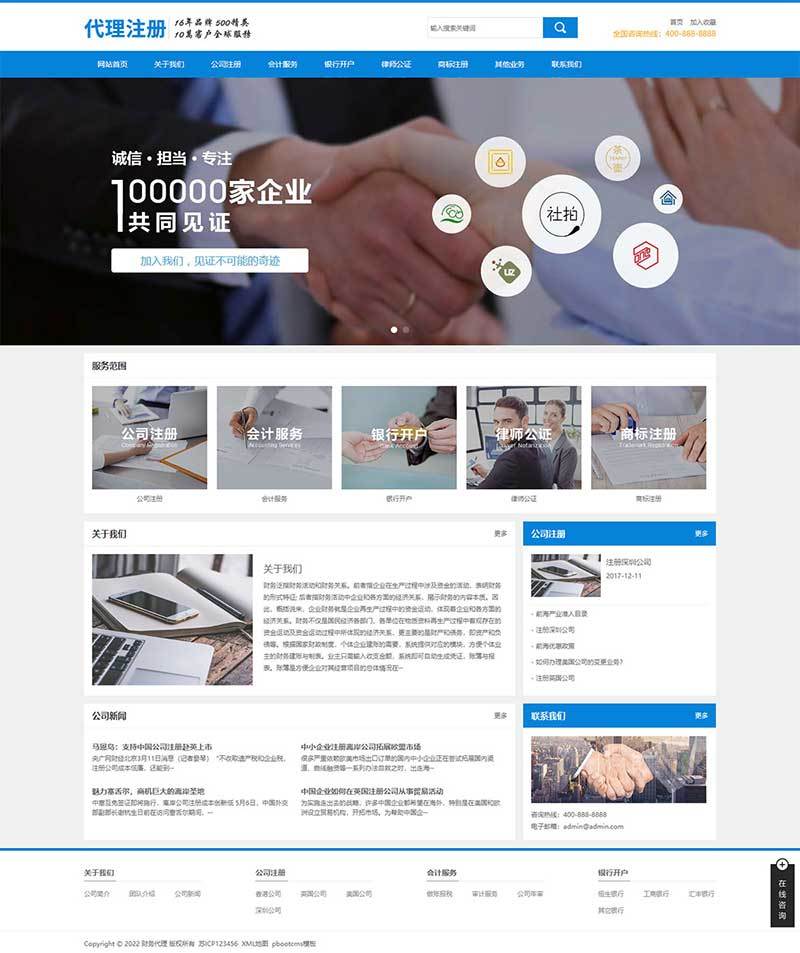 PbootCMS内核开发的网站模板,该模板适用于财务会计网站、律师公证网站等企业,当然其他行业也可以做,只需要把文字图片换成其他行业的即可;