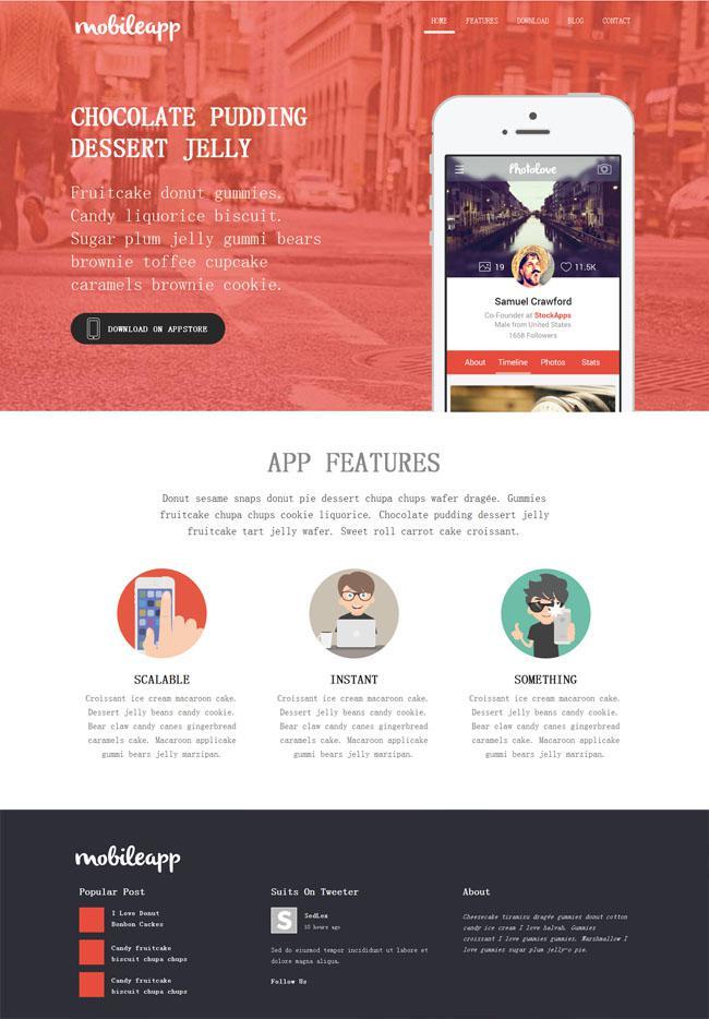 苹果APP软件企业模板是一款红色大气的iPhone手机软件开发企业网站的模板下载。