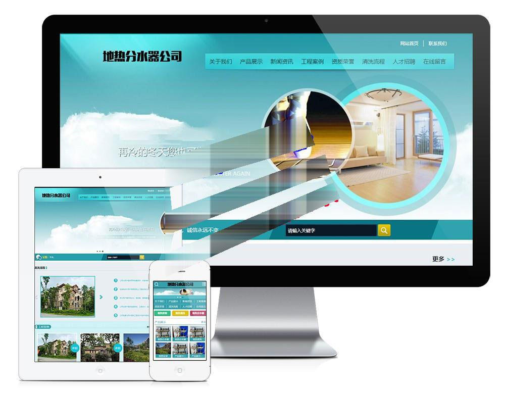 易优cms蓝色地热分水器公司网站模板源码 带手机端 带后台