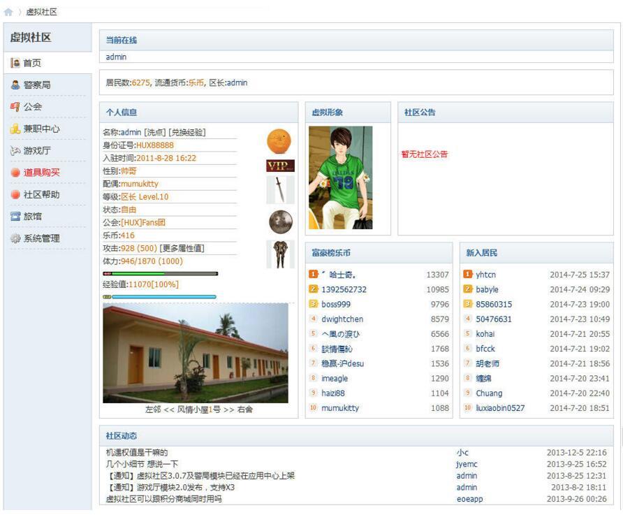 注意:升级时请一定要按顺序升级,如果你的版本太旧,要升级到 *** 版本,请下载升级文件按顺序一步一步升级,如果是全新安装或者一直保持用 *** 版本,可以跳过此步骤,如果不希望在帖子里显示任何和虚拟社区有关的东西,可以直接把huxcity.class.php文件删除掉,本插件不兼容改名卡或者UID商城这类东西,如果你安装了这些东西,请放弃安装本插件