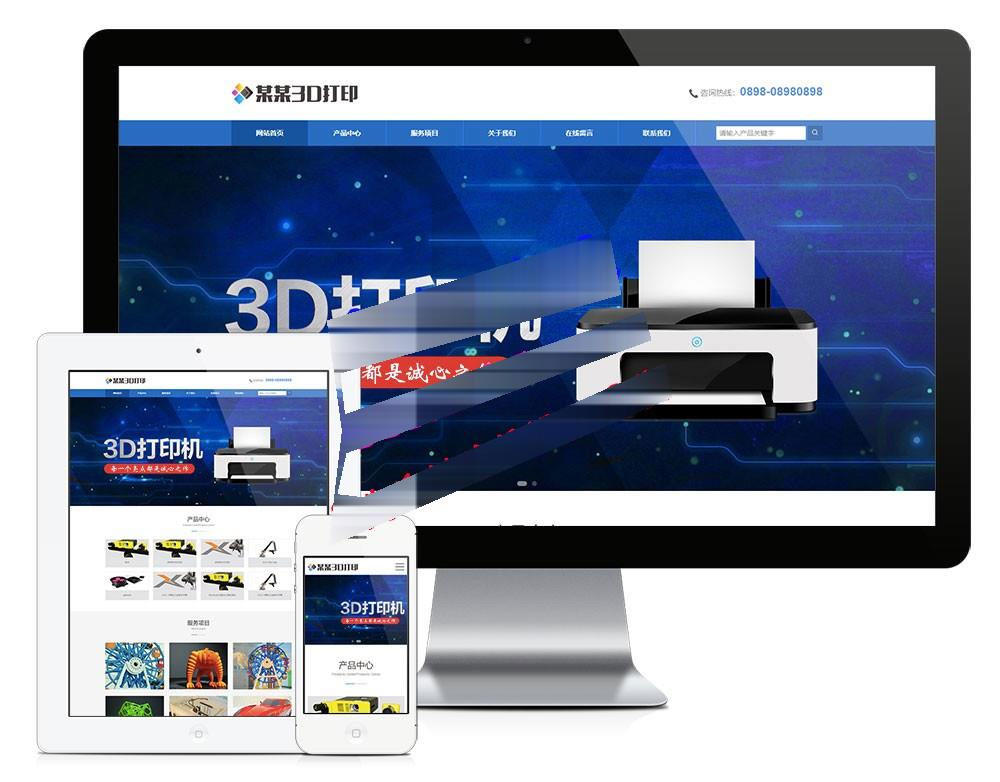 易优cms蓝色响应式3D打印设备公司网站模板源码 自适应手机端 带后台