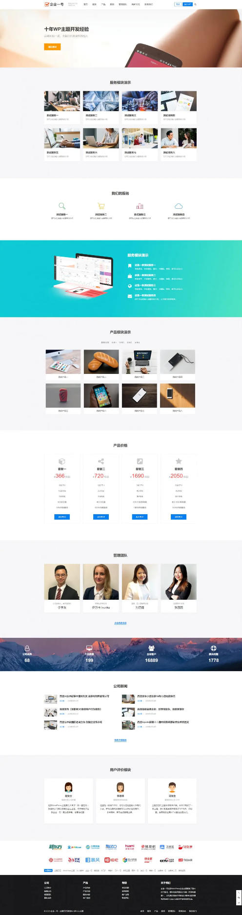 这是一款非常强大、又非常容易上手的WordPress企业主题,如果你希望搭建一个漂亮、专业的企业网站或者产品网站,那么这款企业一号主题会是一个非常不错的选择。