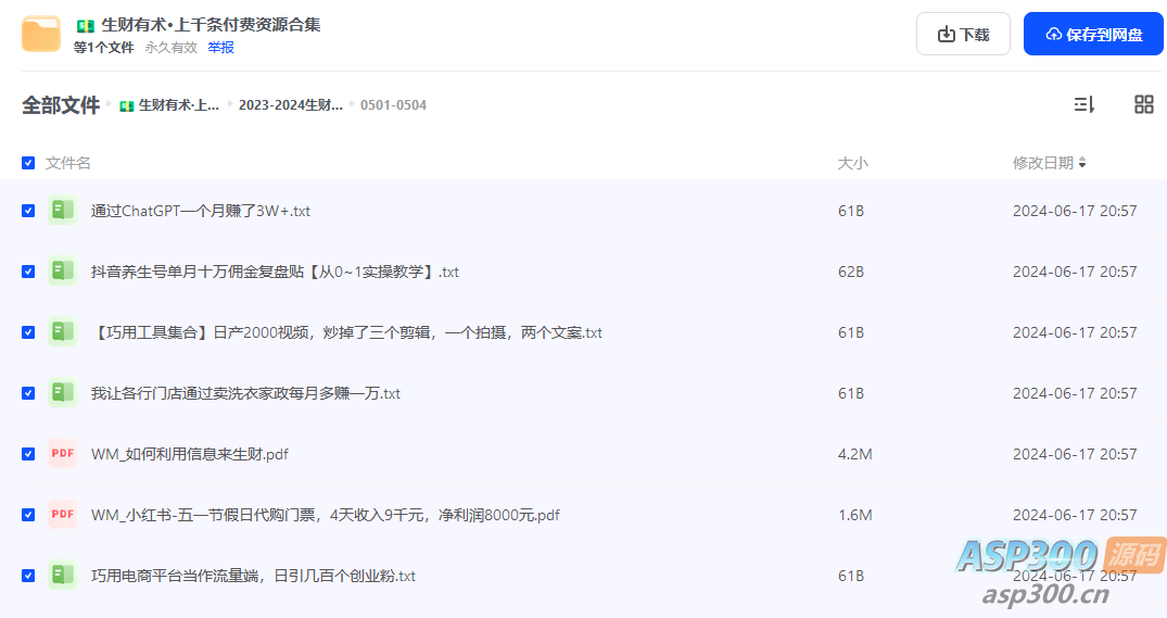 生财有术2021-2024年,上千条付费资源合集,各种网赚项目的实践与思考,可以借鉴~