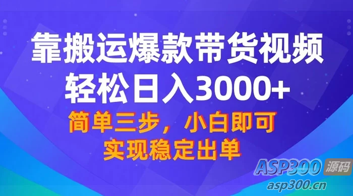 本项目是关于搬运爆款带货视频的,通过这一方法,能够轻松实现每日收入3000+。我们将分享终极3.0玩法,并提供保姆式教学,让任何小白都能够轻松实现稳定的订单。