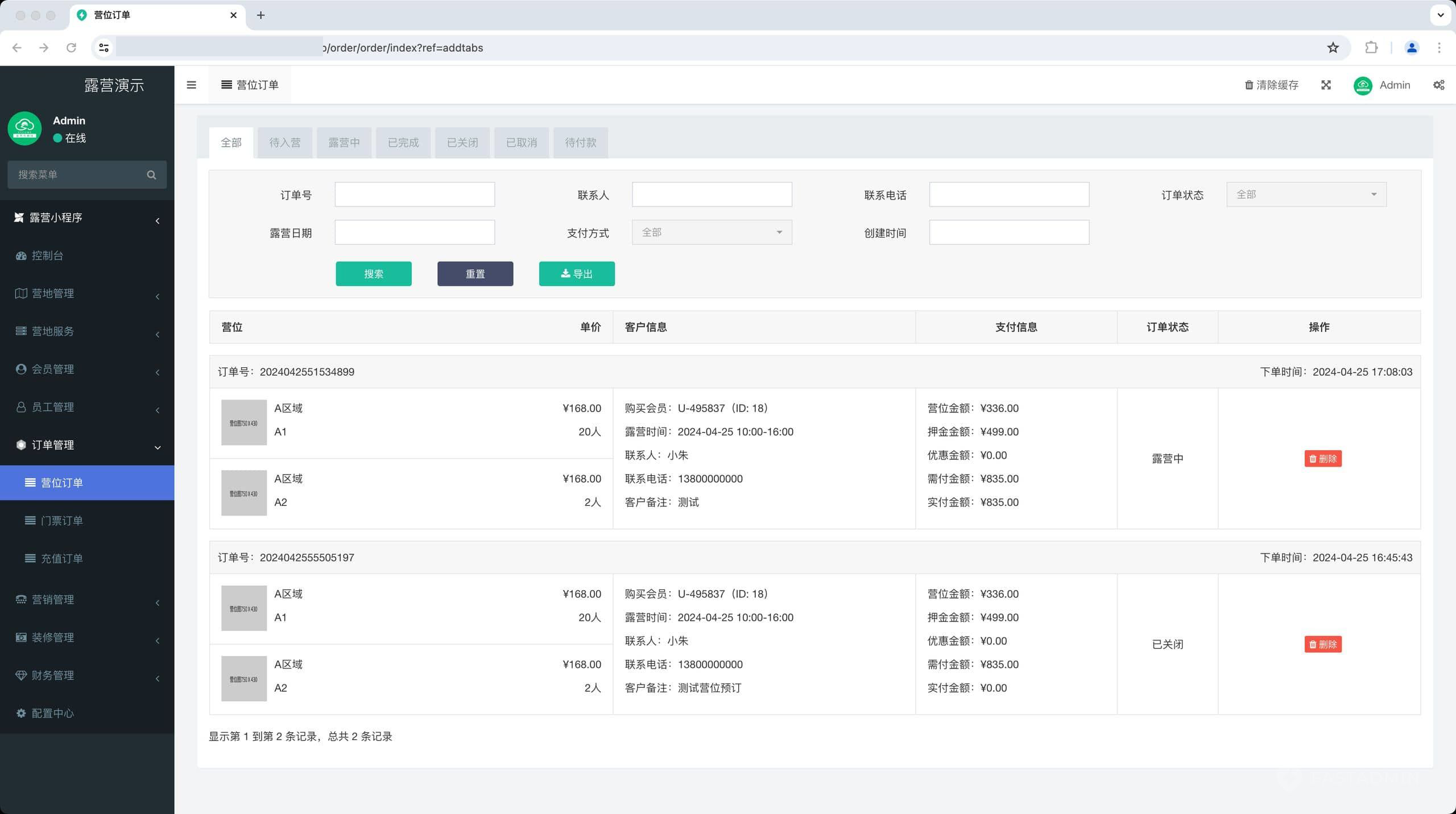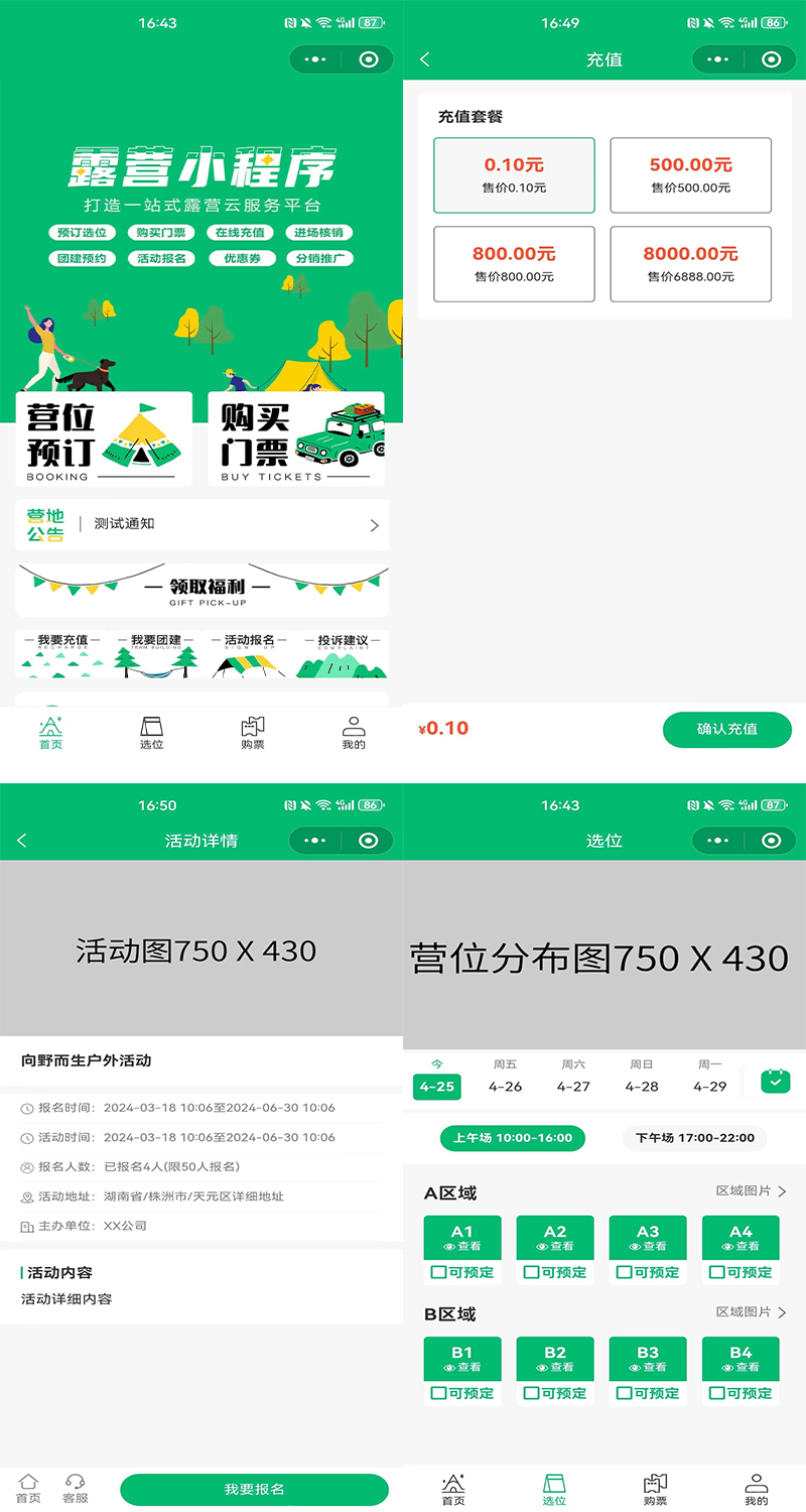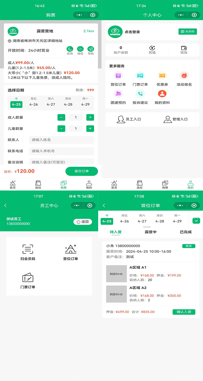 基于ThinkPHP+UniApp开发的现代化的露营地管理小程序,是专为露营业务设计开发小程序应用。平台拥有多角色管理,同时具有营位预定、门票购买等功能模块。