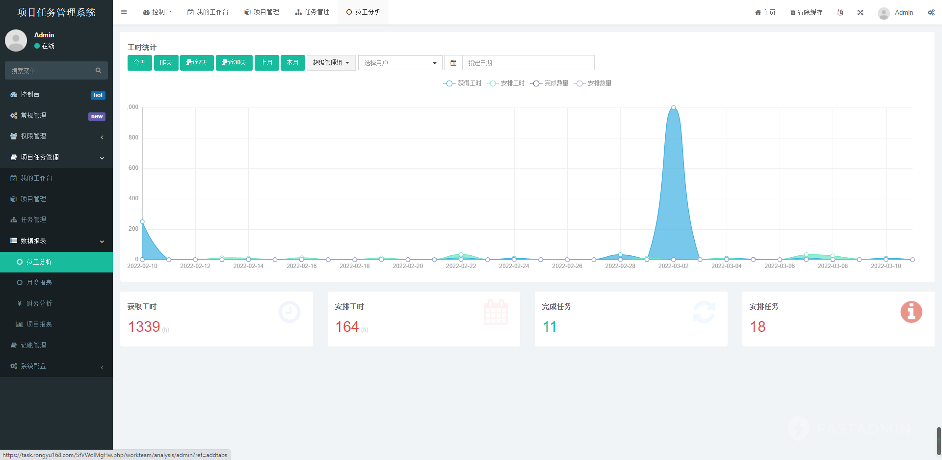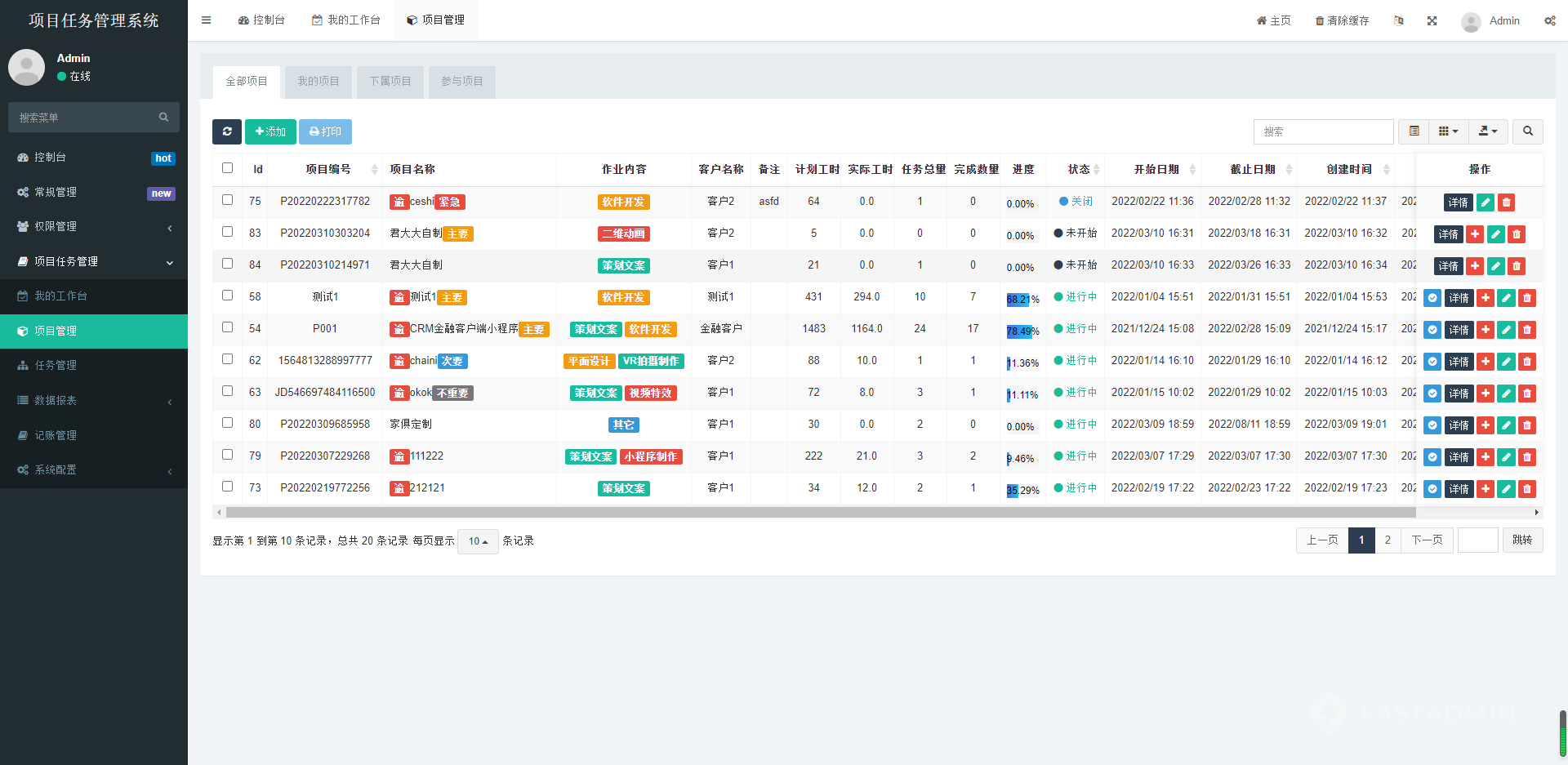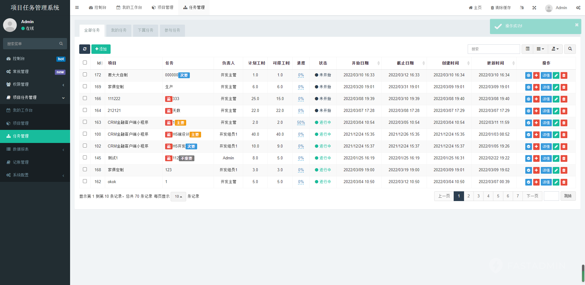 一款基于ThinkPHP开发的项目任务管理系统,用于实现项目管理者下达任务,任务人员接收、分解、处理、完成、统计,及时了解项目进度情况,统计项目参与人员绩效(获得工时、项目付出)等等,而开发的项目任务管理系统。提供全部无加密源码,支持私有化部署。