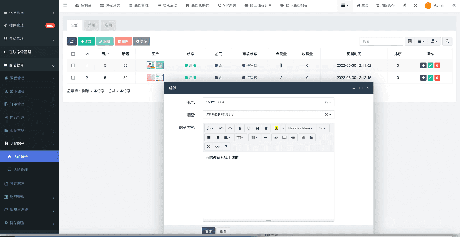 视频课程:在线视频课程,可设置免费、付费两种模式