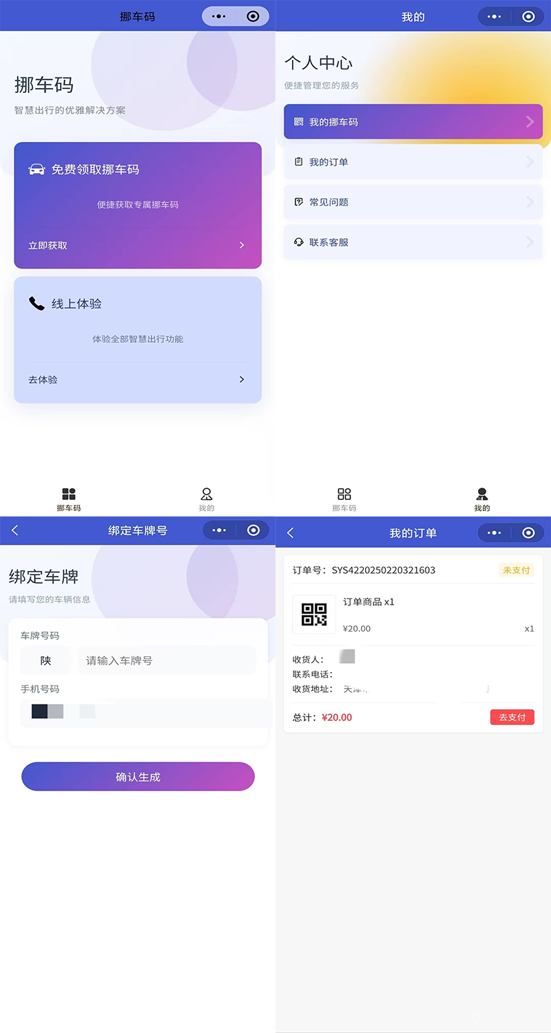 领取挪车码:小程序端支持用户主动申领挪车码。