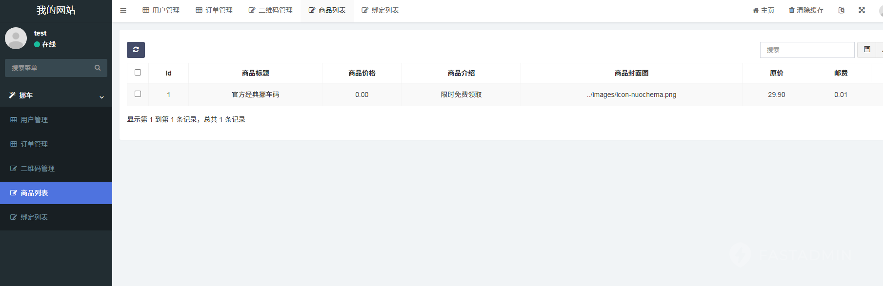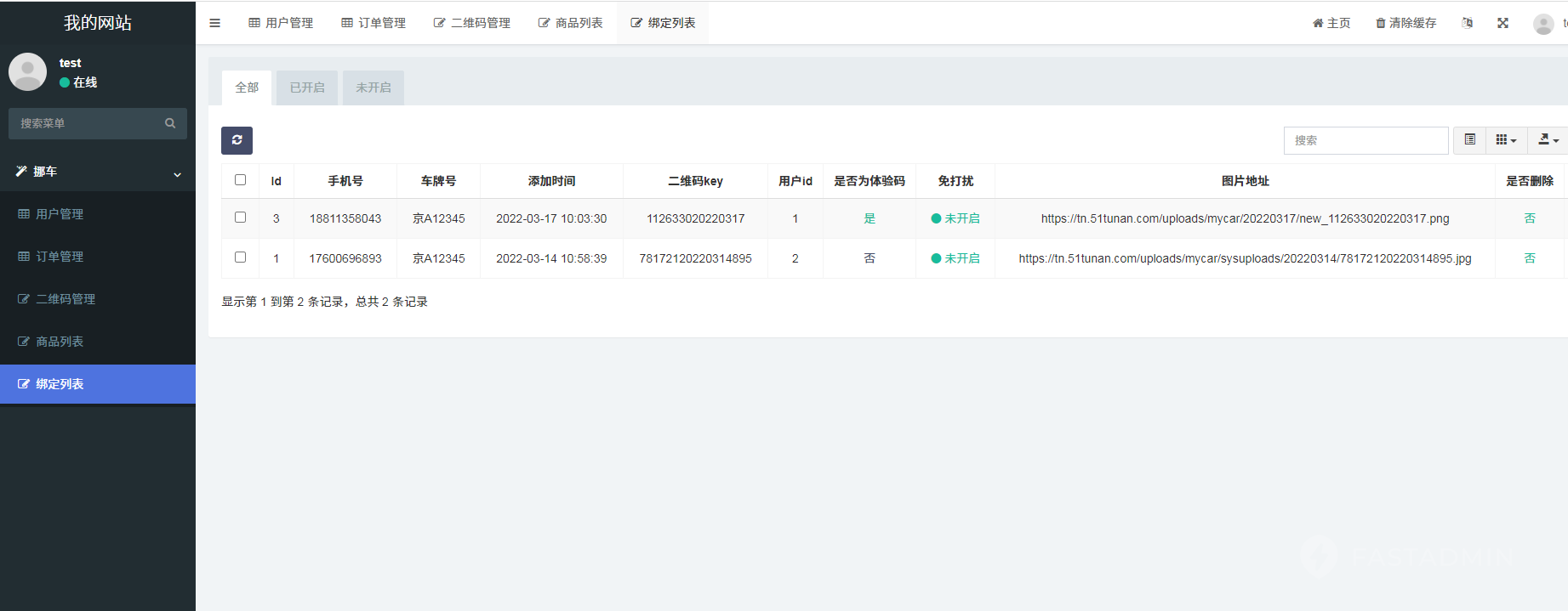 订单管理:后台可对用户订单,绑定用户,挪车码等进行管理
