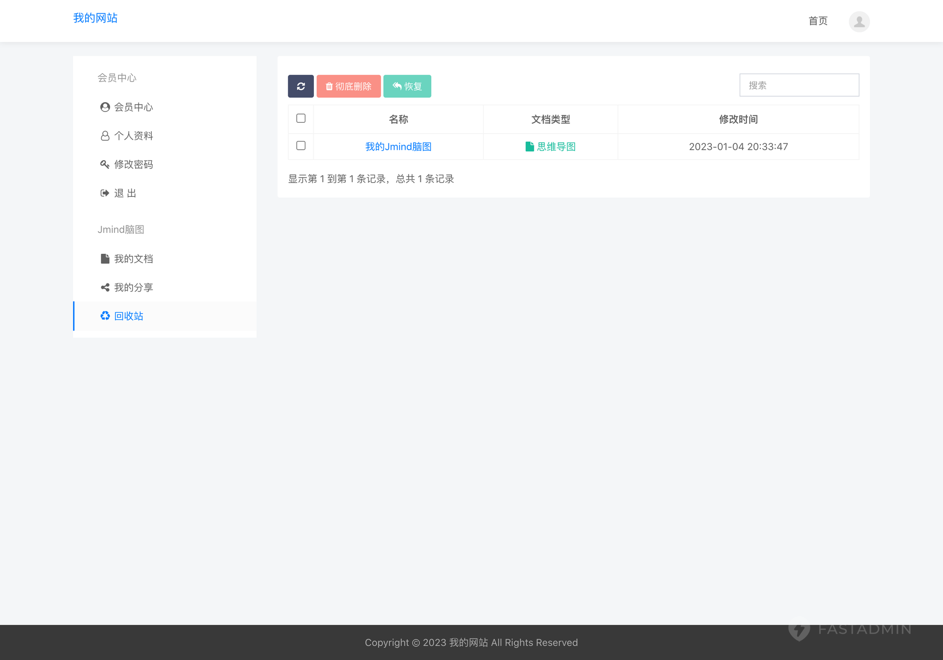 支持 回收站功能,让你的数据可找回(从回收站删除后将不可找回)