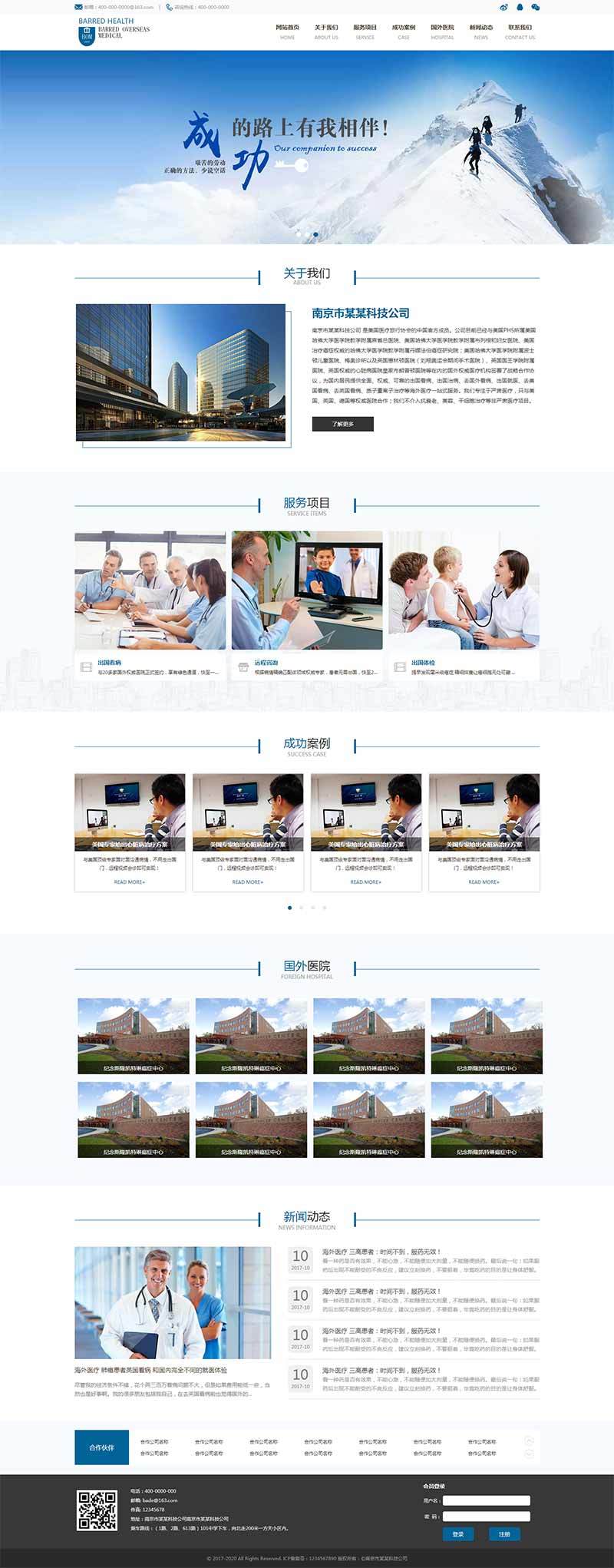 蓝色的医疗服务,医疗设备,医疗研发,医疗科技公司官网页面模板html下载。包含:关于我们、服务项目、成功案例、国外医院 、新闻动态 、联系我们等总共7个页面。